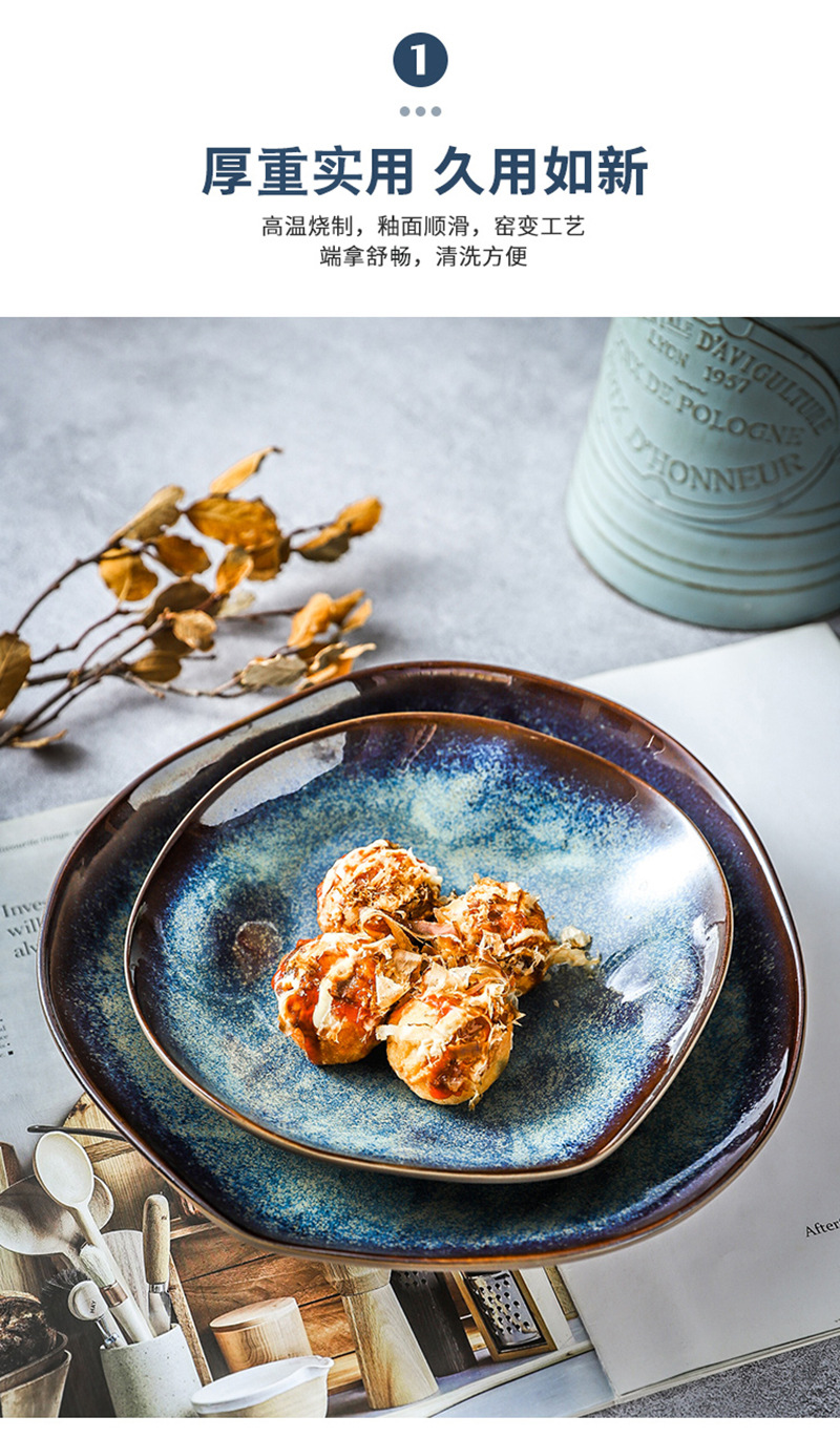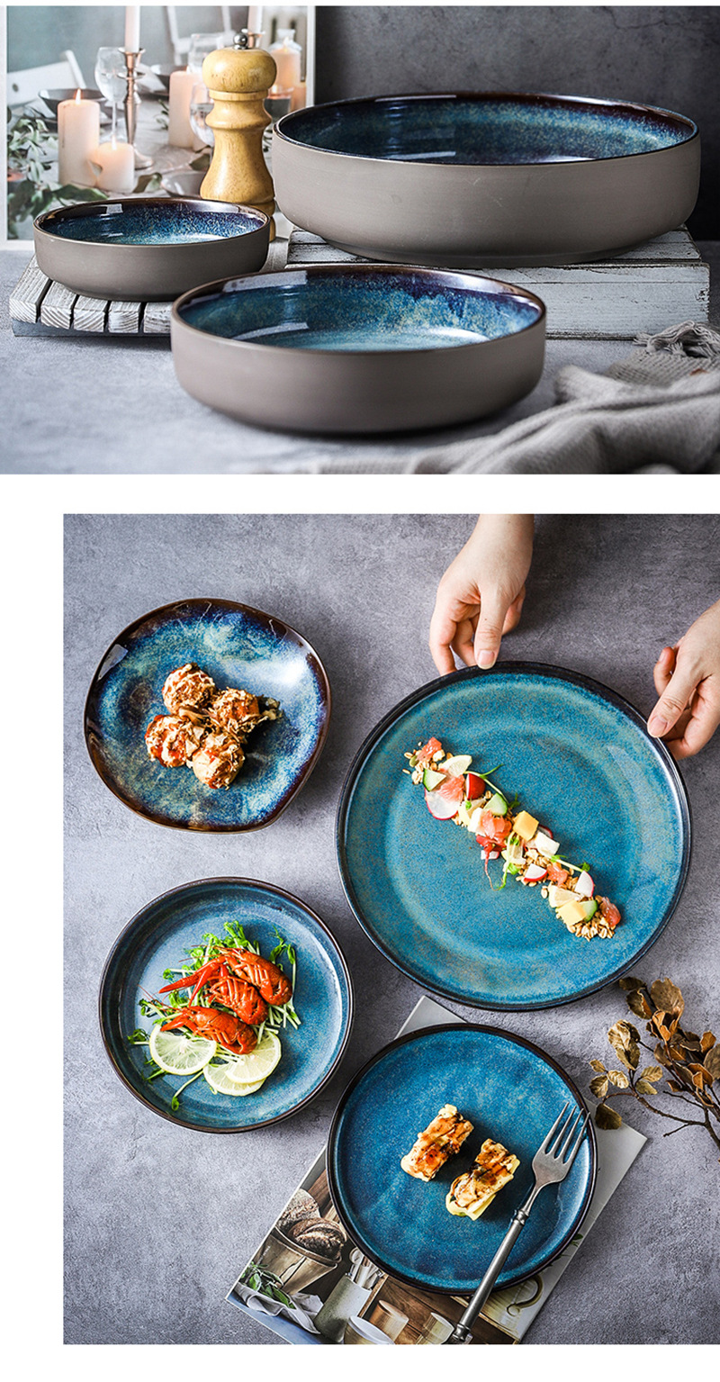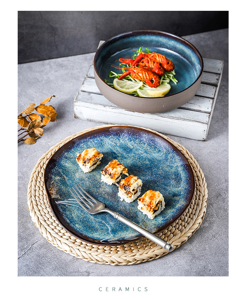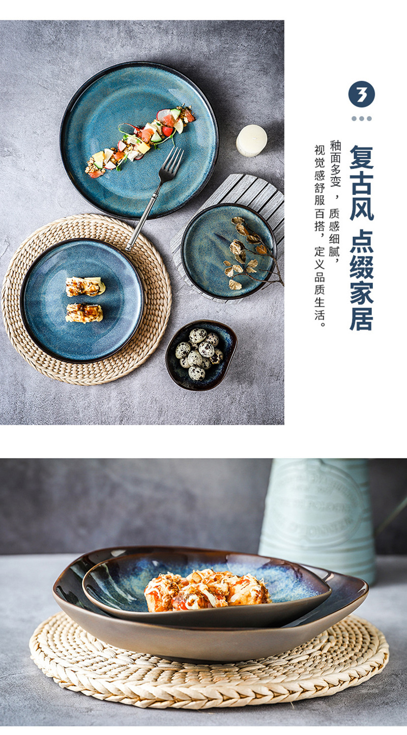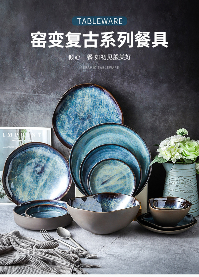 Kiln-changing ceramic tableware retro ceramic tableware ceramic Japanese-style dishes suit ramen bowl shaped plate soup plate shallow plate