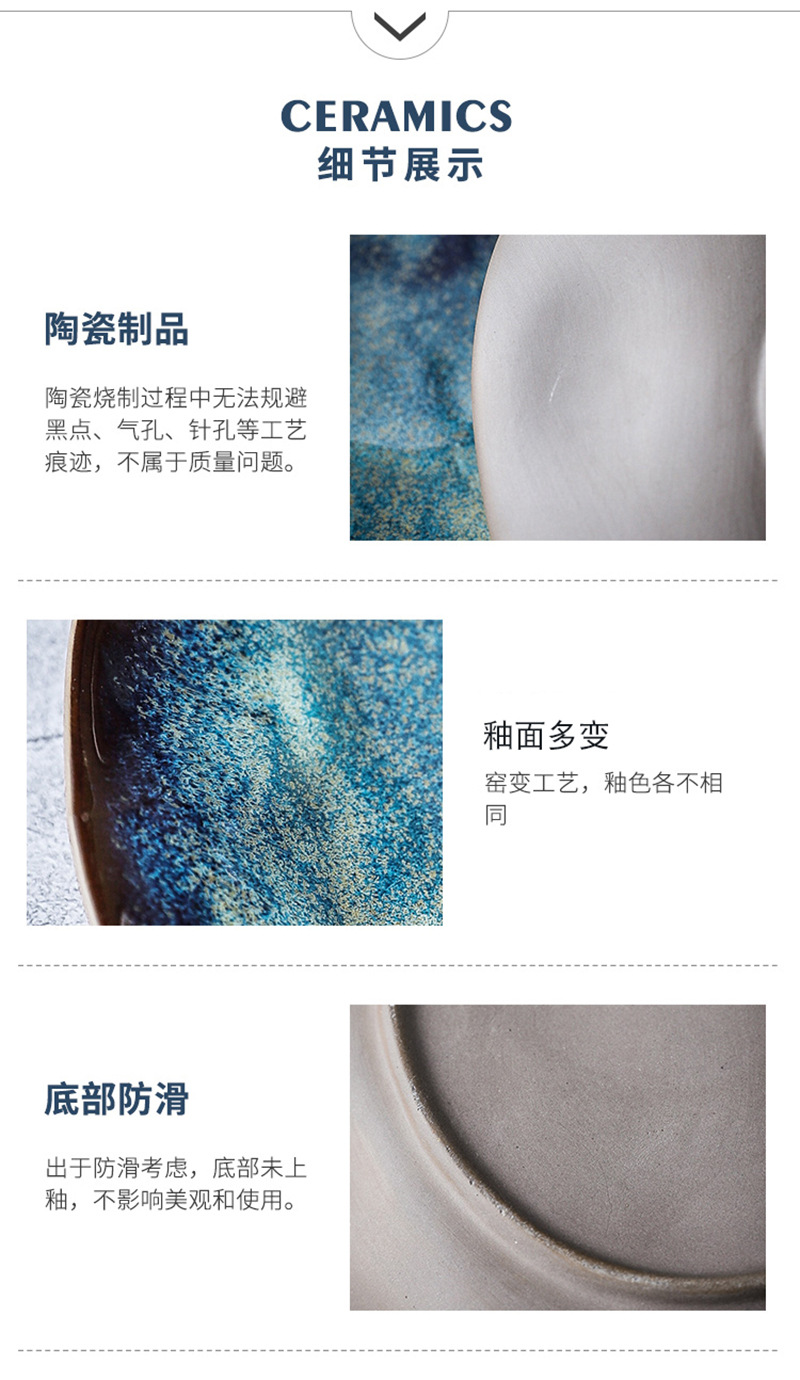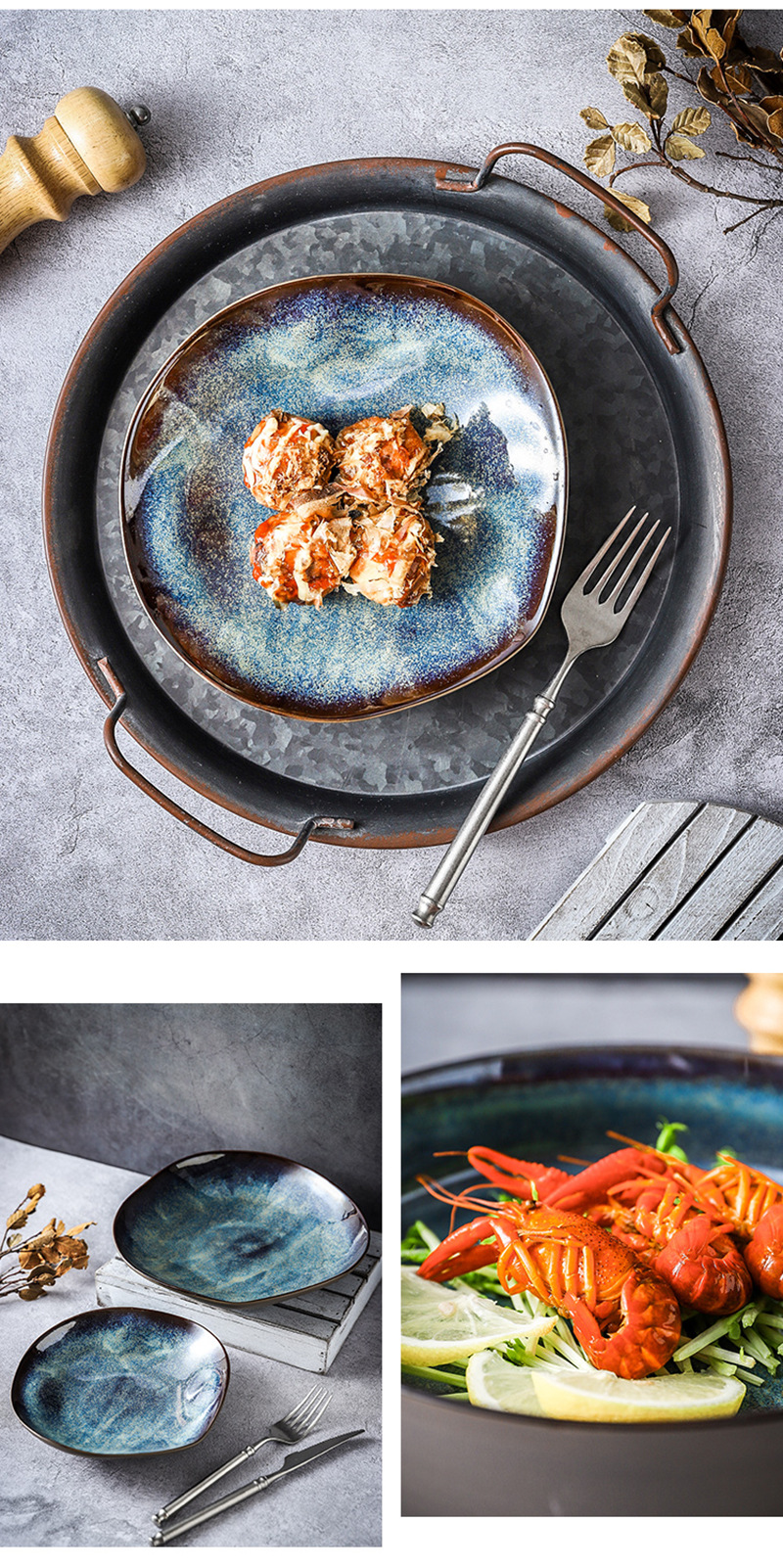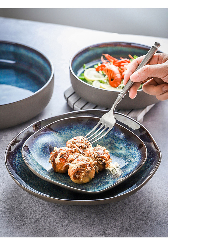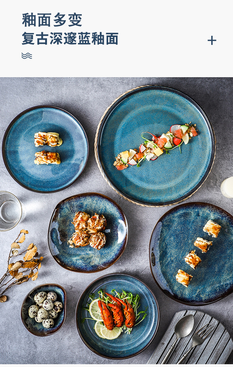 Kiln-changing ceramic tableware retro ceramic tableware ceramic Japanese-style dishes suit ramen bowl shaped plate soup plate shallow plate
