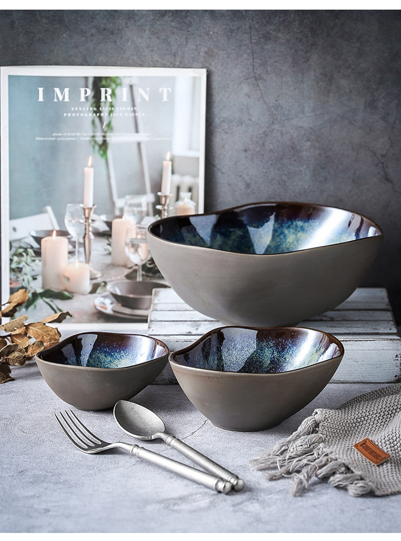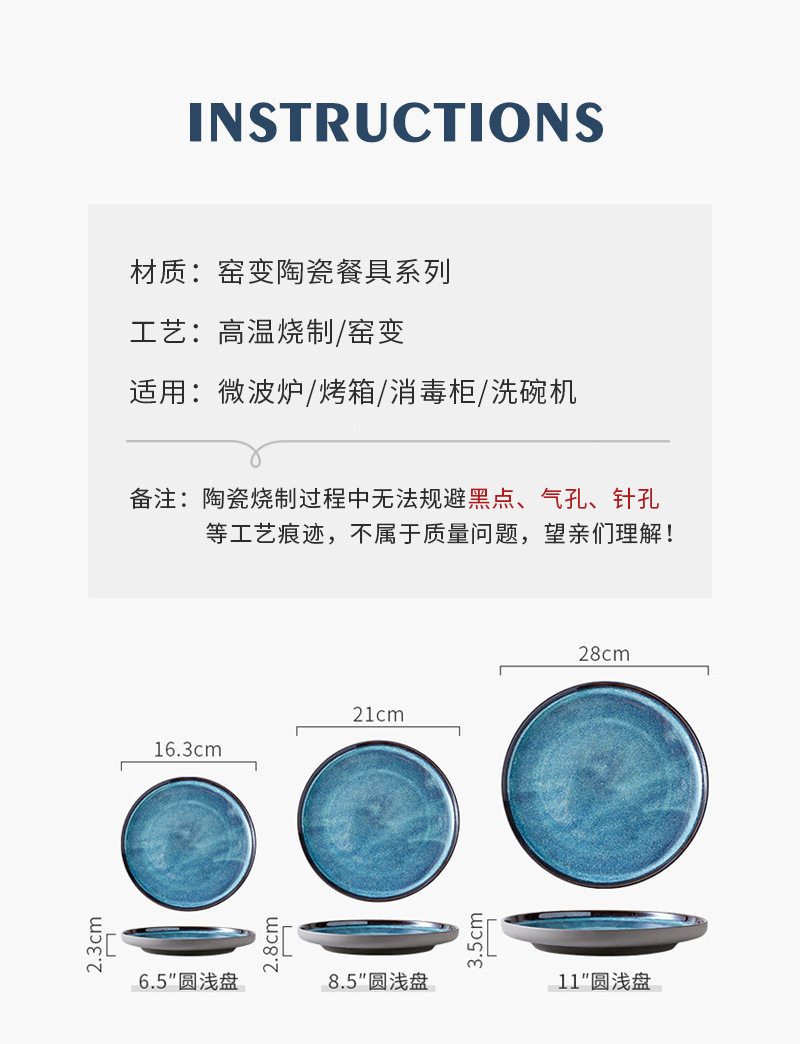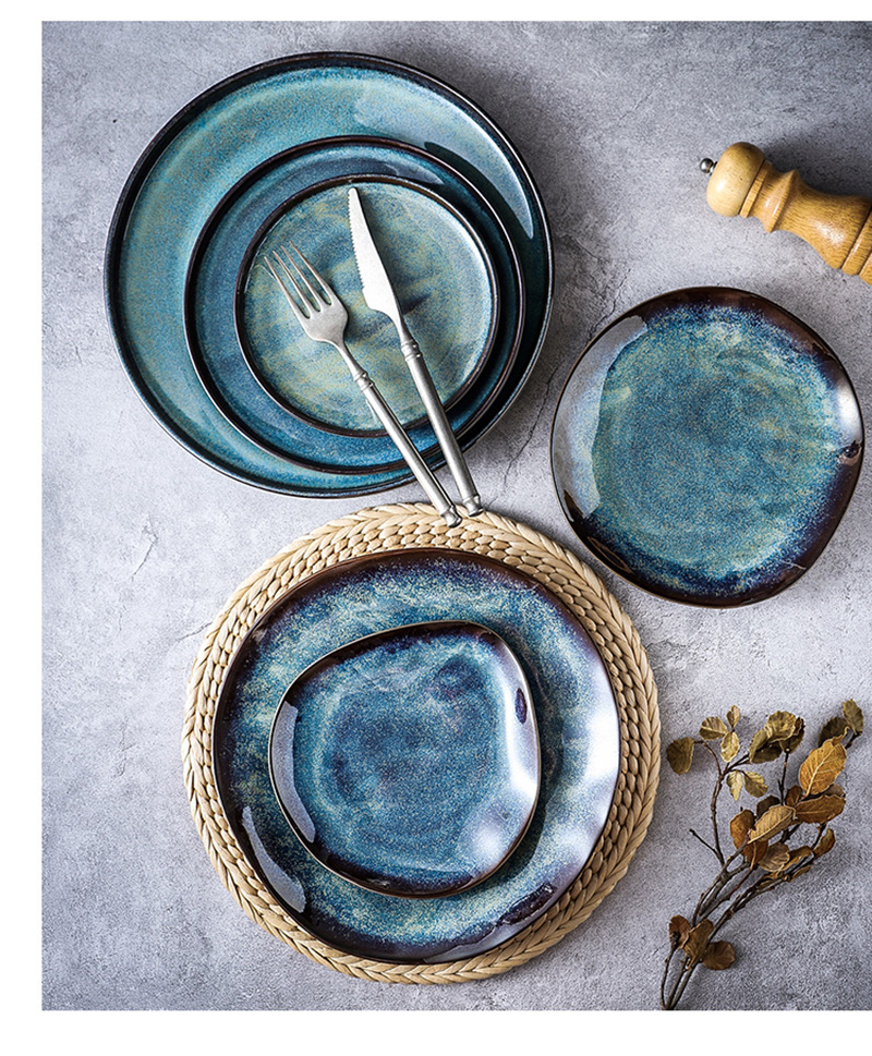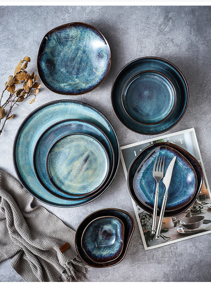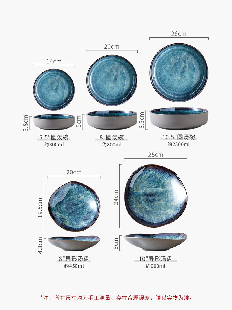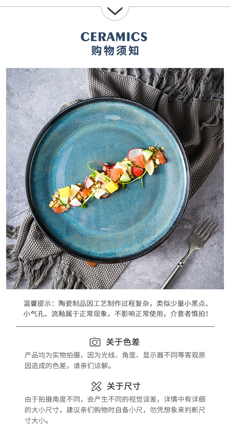 Kiln-changing ceramic tableware retro ceramic tableware ceramic Japanese-style dishes suit ramen bowl shaped plate soup plate shallow plate