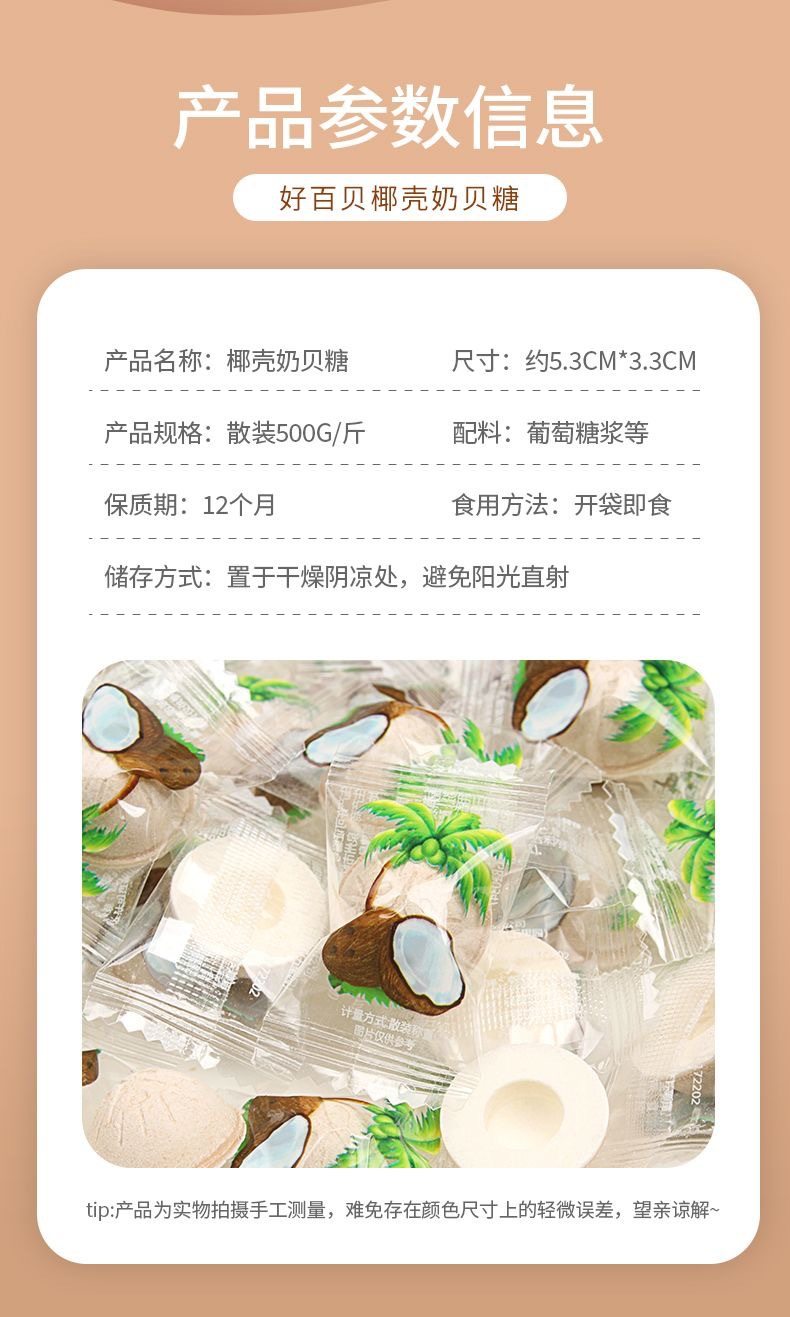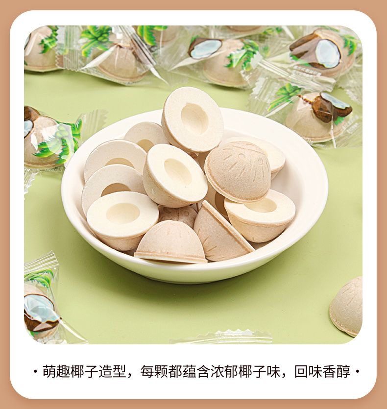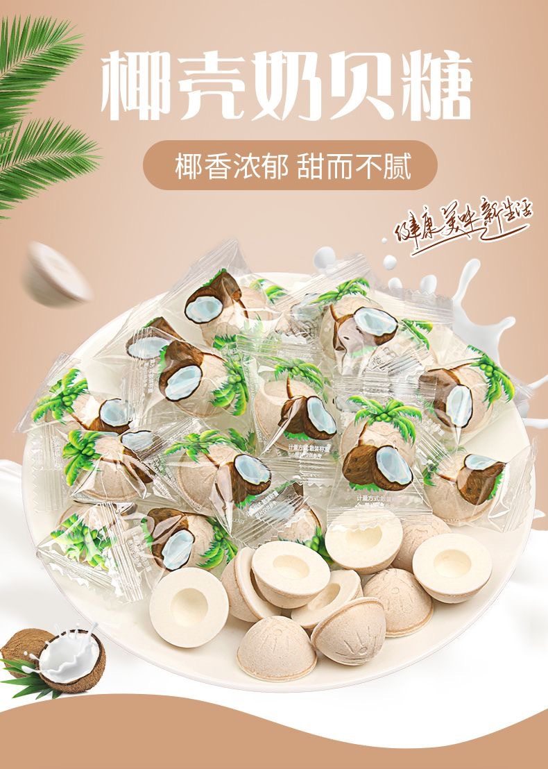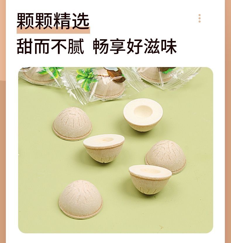 Packaging specifications Coconut shell milk candy 2.5kg pack,Coconut shell milk candy 15kg / box,Coconut shell milk candy 500g,Coconut milk candy 250g,Coconut milk candy 100g