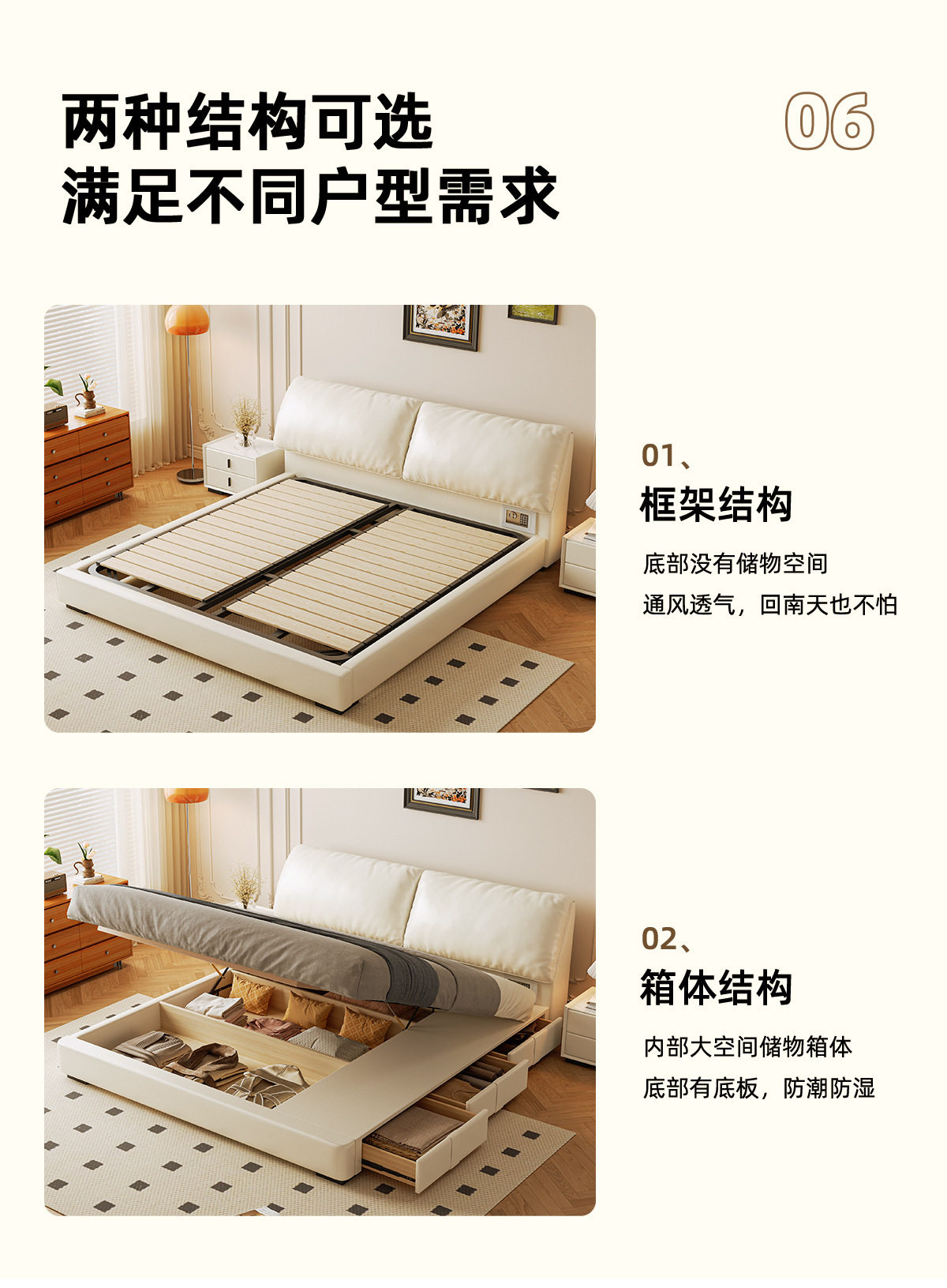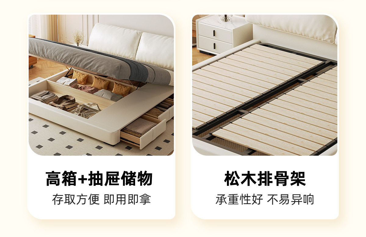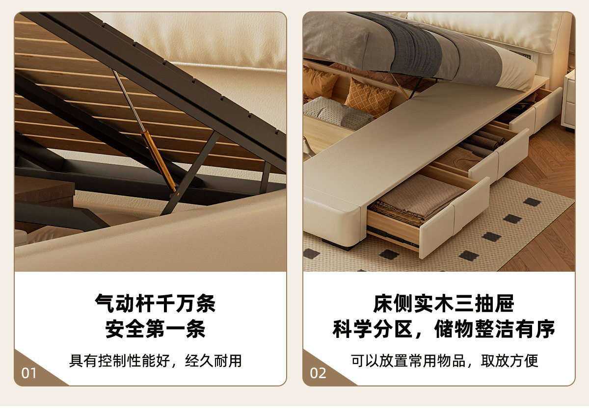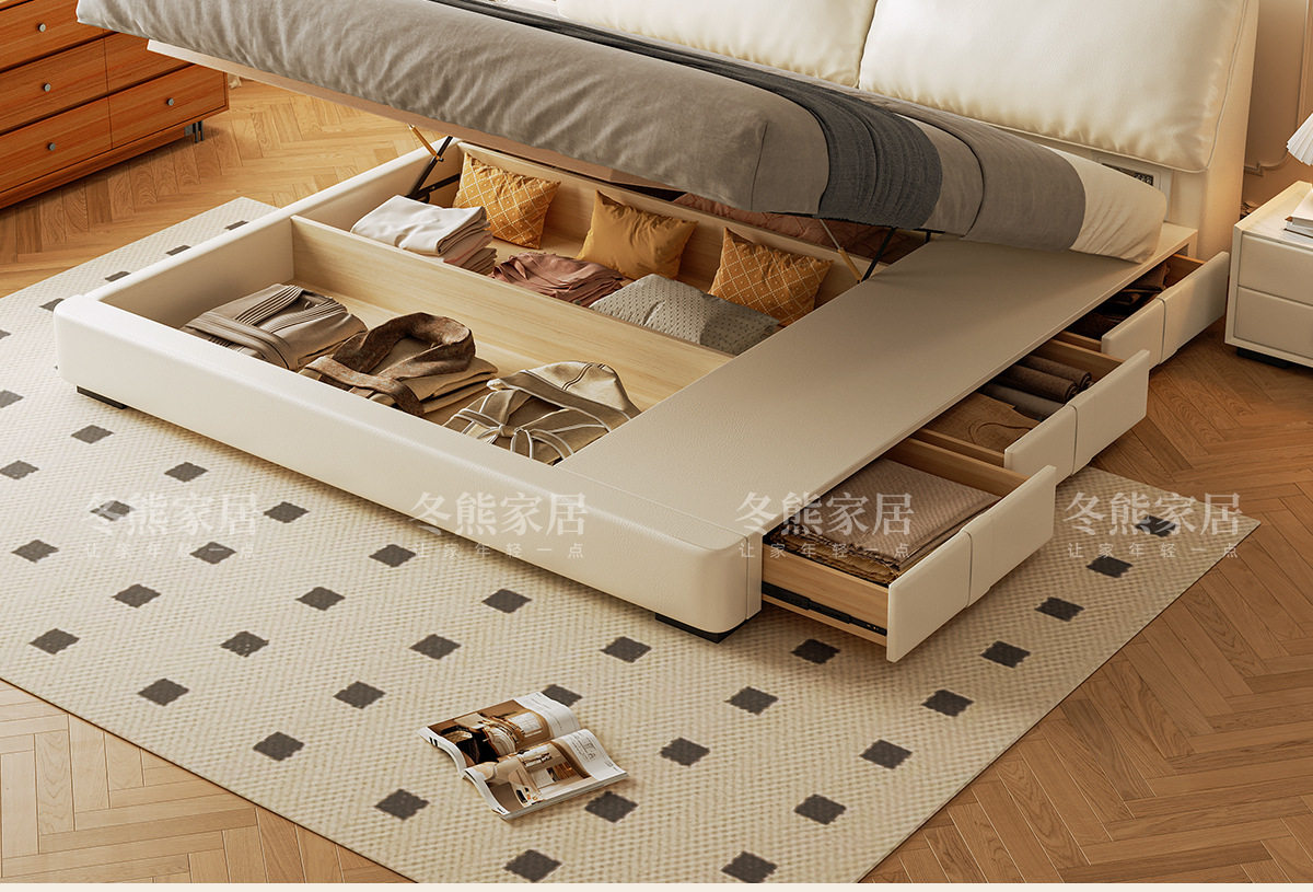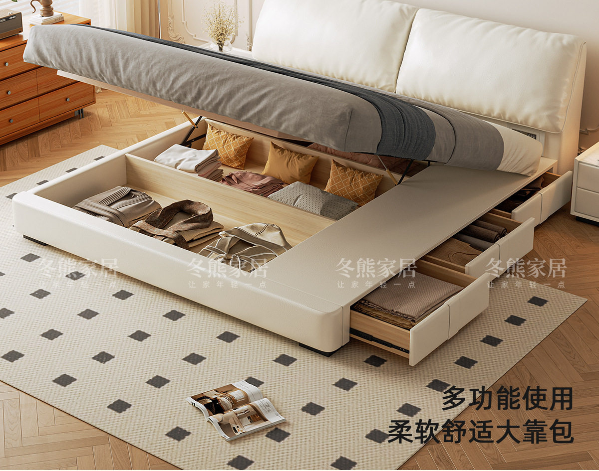 Jihe Elephant Ears Leather Bed Light Luxury Storage High Box with Drawer Secret Lock Multifunctional Bed Master Bedroom Queen Bed