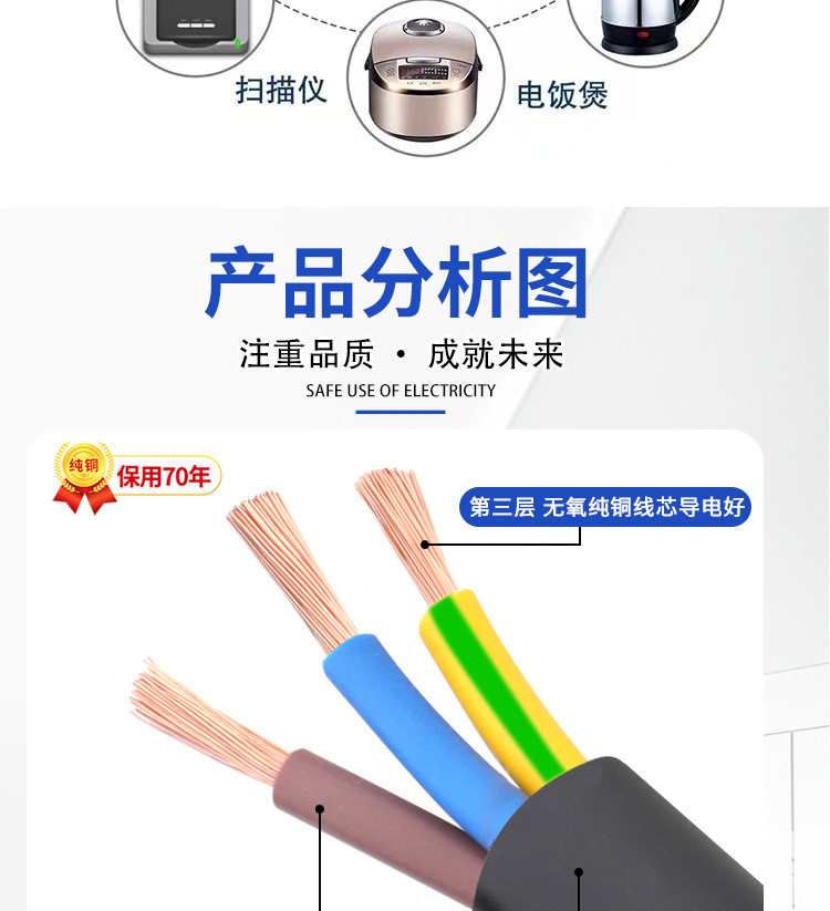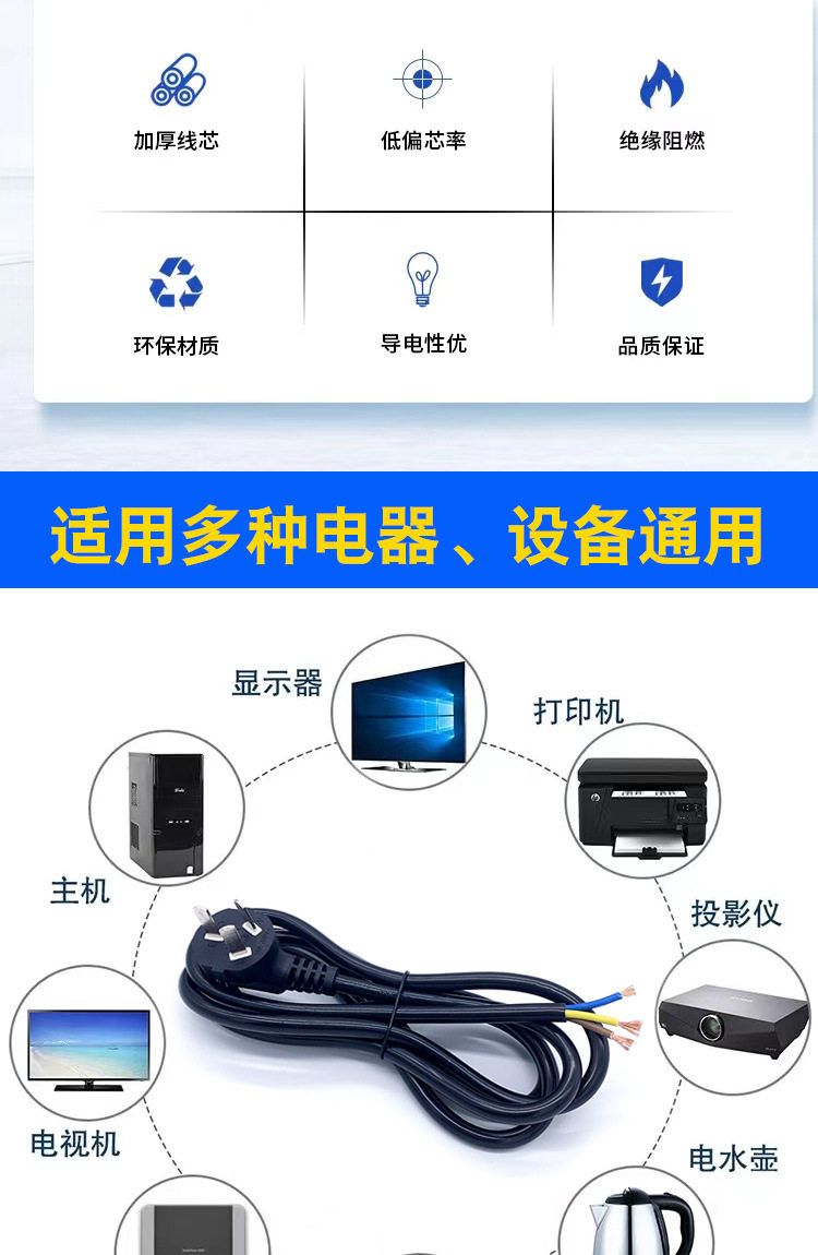 Scope of application Rice cooker,Dishwasher,Hair dryer,Humidifier,Cervical spine massager,Air conditioning fan,Eye massager,Bread machine,Balance car,Electric hair clipper,Neck beauty instrument,Face slimming device,Electric cake setting,Lighting equipment,Spray meter,Electrical equipment,Facial cleanser,Blackhead meter,Oxygen injection meter,Battery with fire wire,Air fryer,Face steamer,Rf beauty instrument,Equipment installation project,Computer equipment,Wall breaking machine,Rf introduction instrument,Monitoring equipment,Electric vehicle conversion line,PDU server,Fascia gun,Bath instrument,Exfoliator,High power equipment, electrical appliances,Outdoor LED light string,Fire power supply cable,Integrated lamp plug wire,For home and indoor AC extension,Household internal and external equipment waterproof connection cable,Other