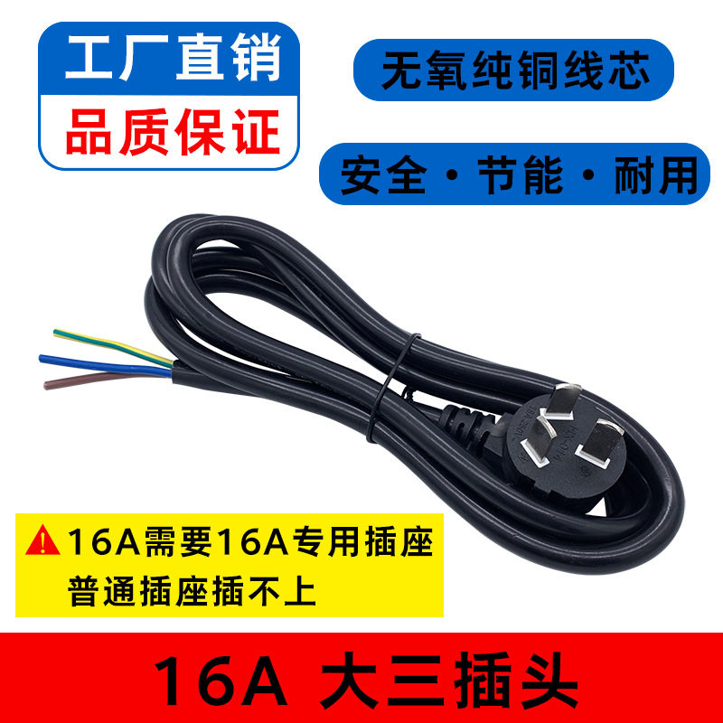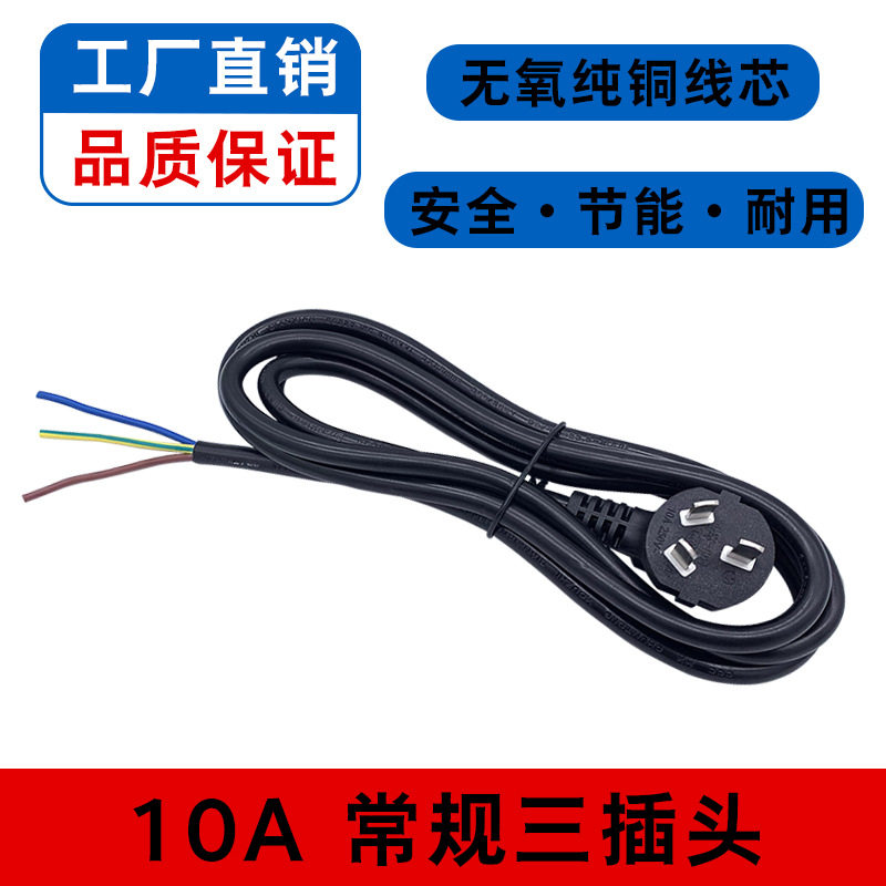 NAtionAl StAndArd Three-plug BAre Wire TAil Power Cord 3-core with Plug Pure Copper 0.75/1.5 SquAre 1016A Single-heAd Plug Cord
