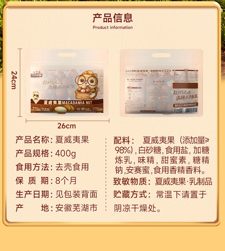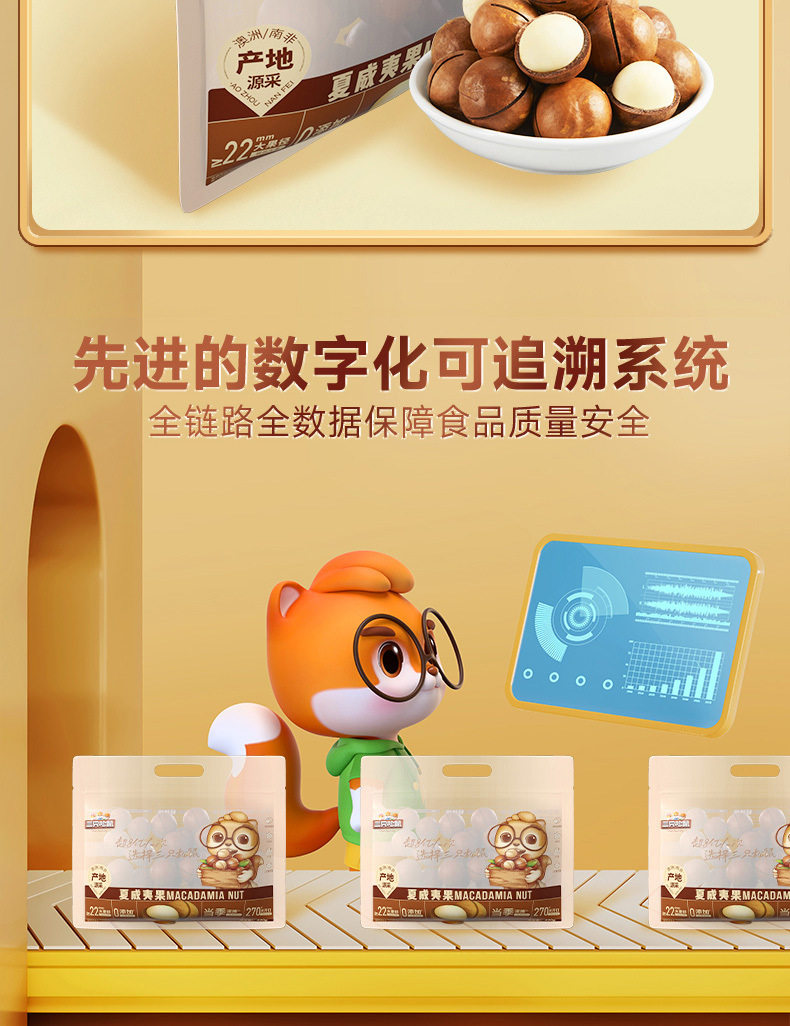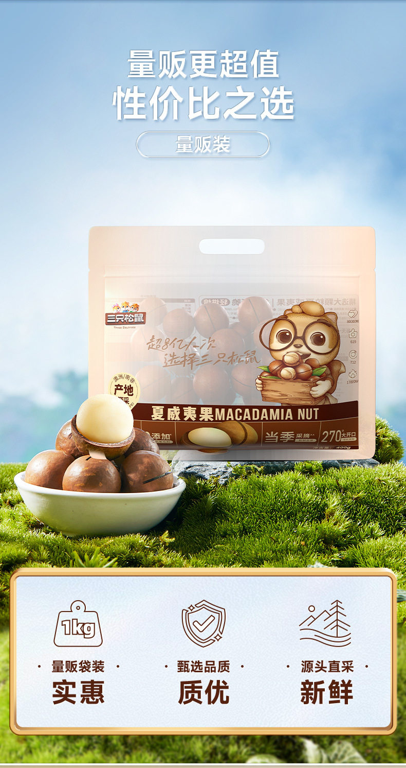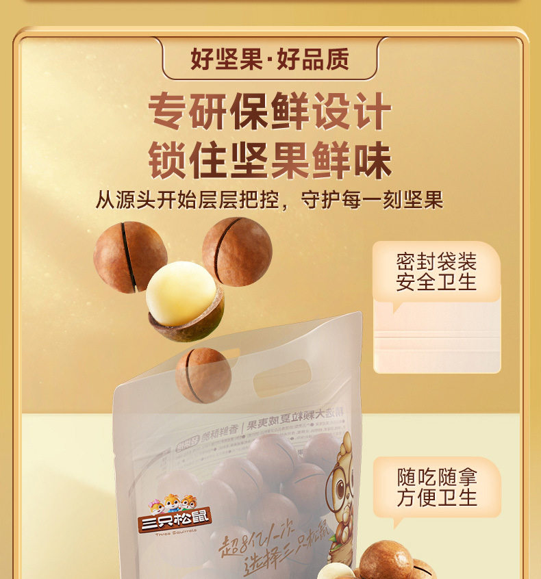 Three Squirrels Macadamia Fruit/Volume Vendor Bagged Value Leisure Nuts Snacks Pregnant Women's Health Dried Fruit Specialty