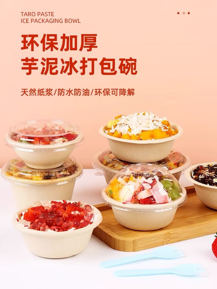 Degradable Disposable Ice Powder Bowl Taro Mud Ice Packing Bowl Internet Popular Packing Thickened Paper Bowl Night Market Stall Commercial Round