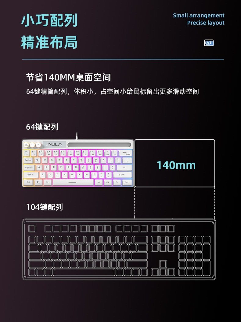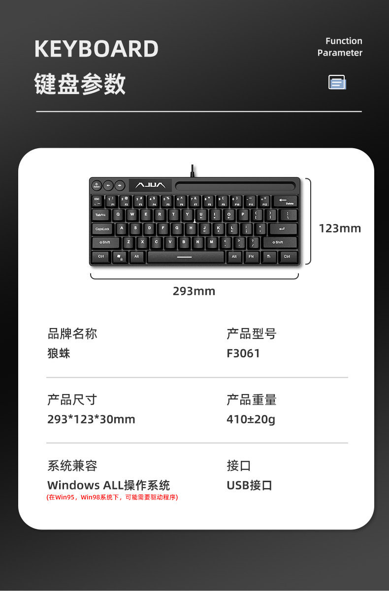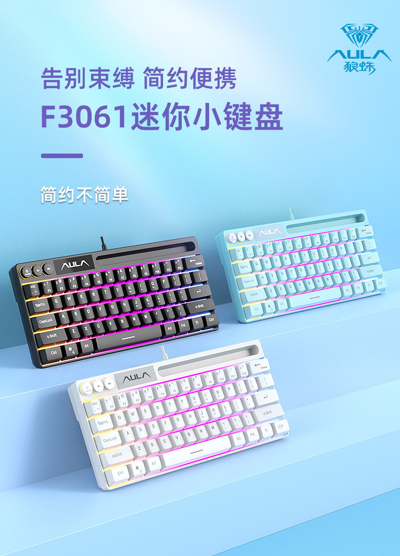 Tarantula F3061 mechanical feel keyboard 64 key wired mini RGB desktop laptop convenient