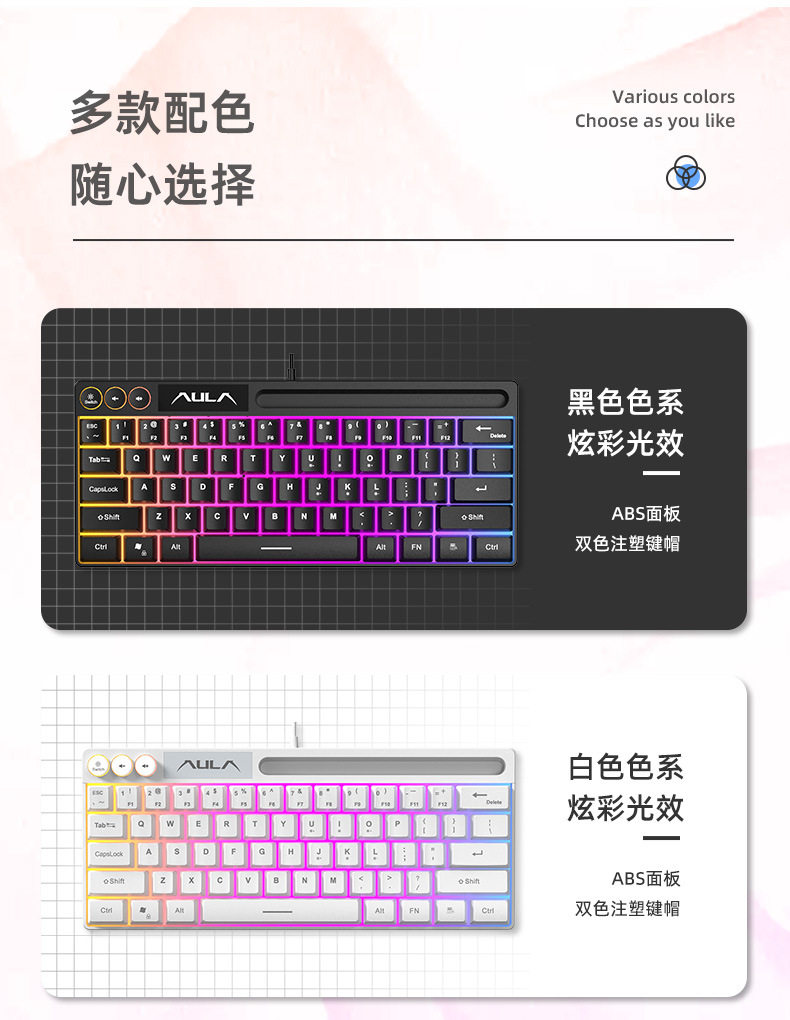 | Color | Black colorful light wired keyboard,White colorful light wired keyboard,Color rgb light powder wired keyboard,Patriot//er wq7623 black wireless keyboard and mouse set,Patriot wq7623 white wireless keyboard and mouse combo |