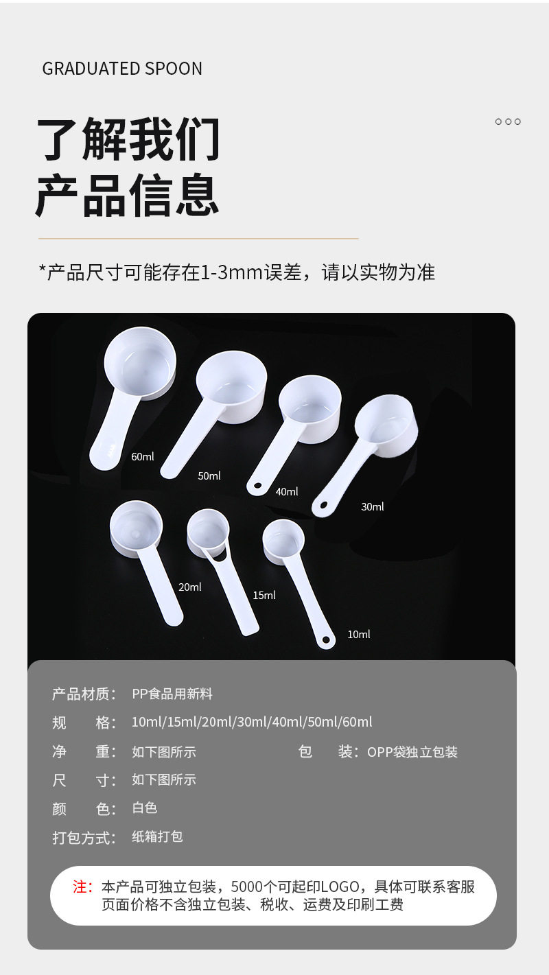 Food grade pp new material solid liquid dual-purpose plastic spoon white scale spoon plastic measuring spoon independent packaging