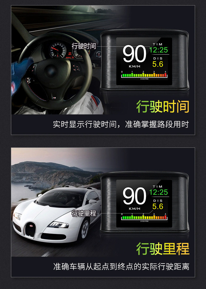 Car Smart Hud Head-Up Display Car High-Definition Obd Portable Lcd Driving Computer Display P10