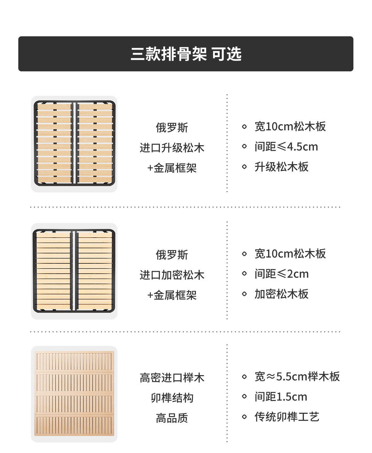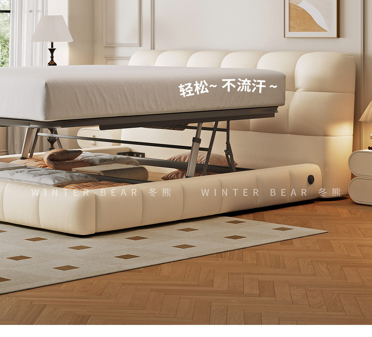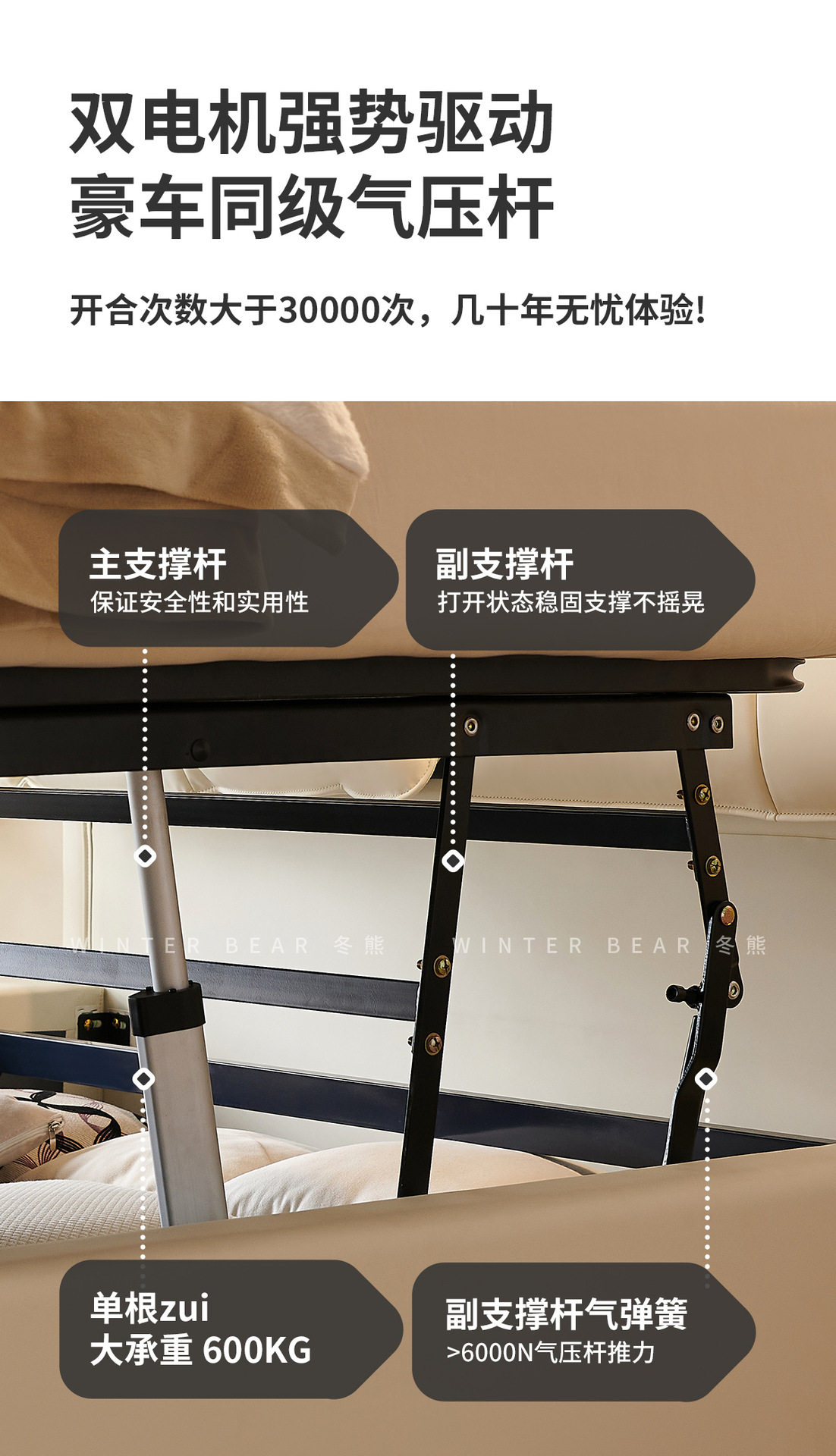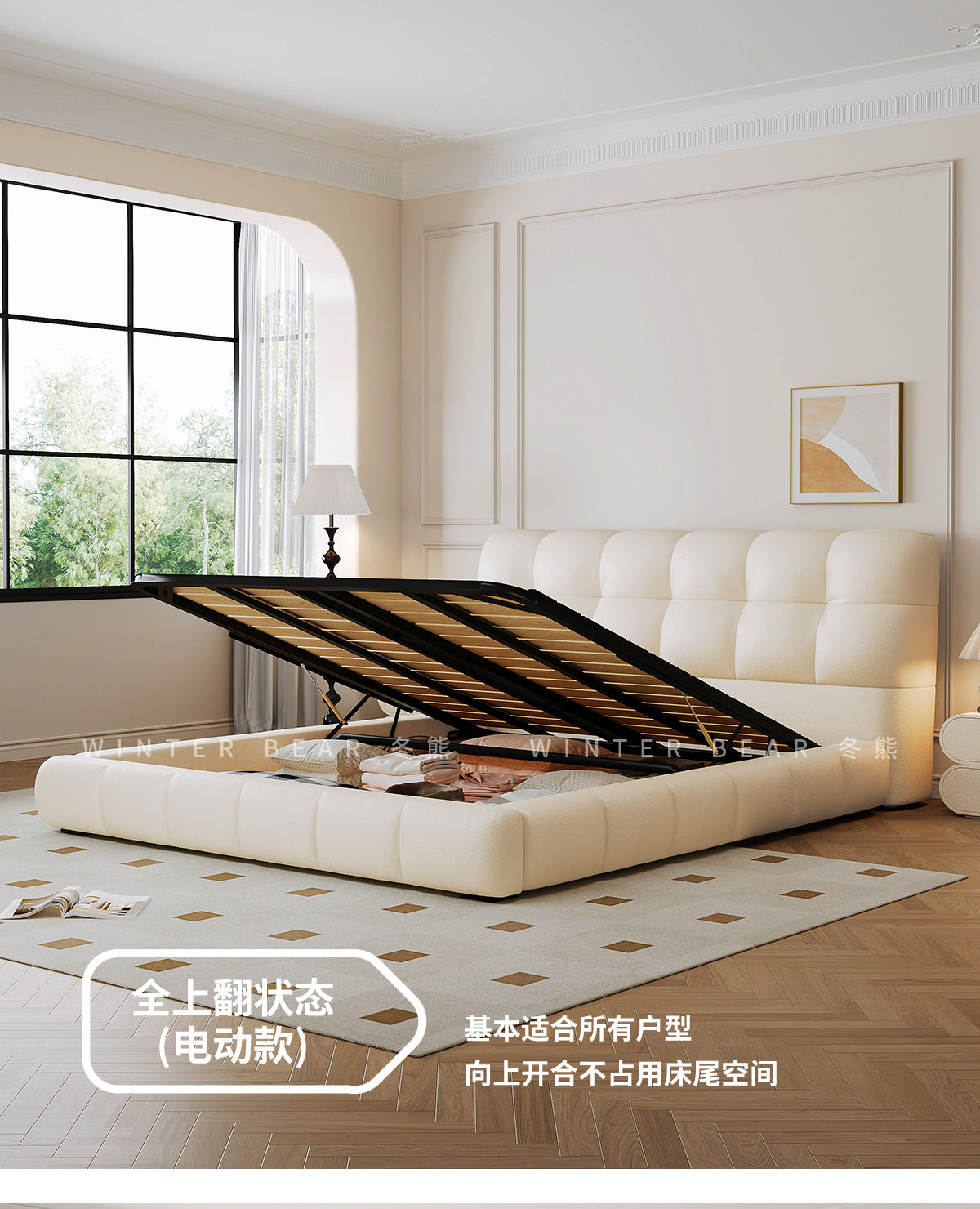 | Size | 1500*2000mm frame structure,1800*2000mm frame structure,1500*2000mm translation storage high box,1800*2000mm translation storage structure,1500*2000mm high tail box storage with three drawers,1800*2000mm high tail box storage with three drawers,1500*2000mm translation storage + three drawers,1800*2000mm translation storage + three drawers,1500*2000mm fully electric translation storage structure,1800*2000mm fully electric translation storage structure |