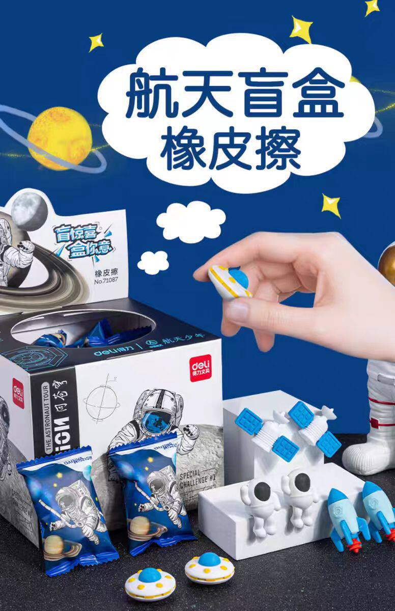 Deli Space Eraser Blind Box Primary School Kindergarten Prizes Traceless Clean Astronaut Creative Rubber Wholesale