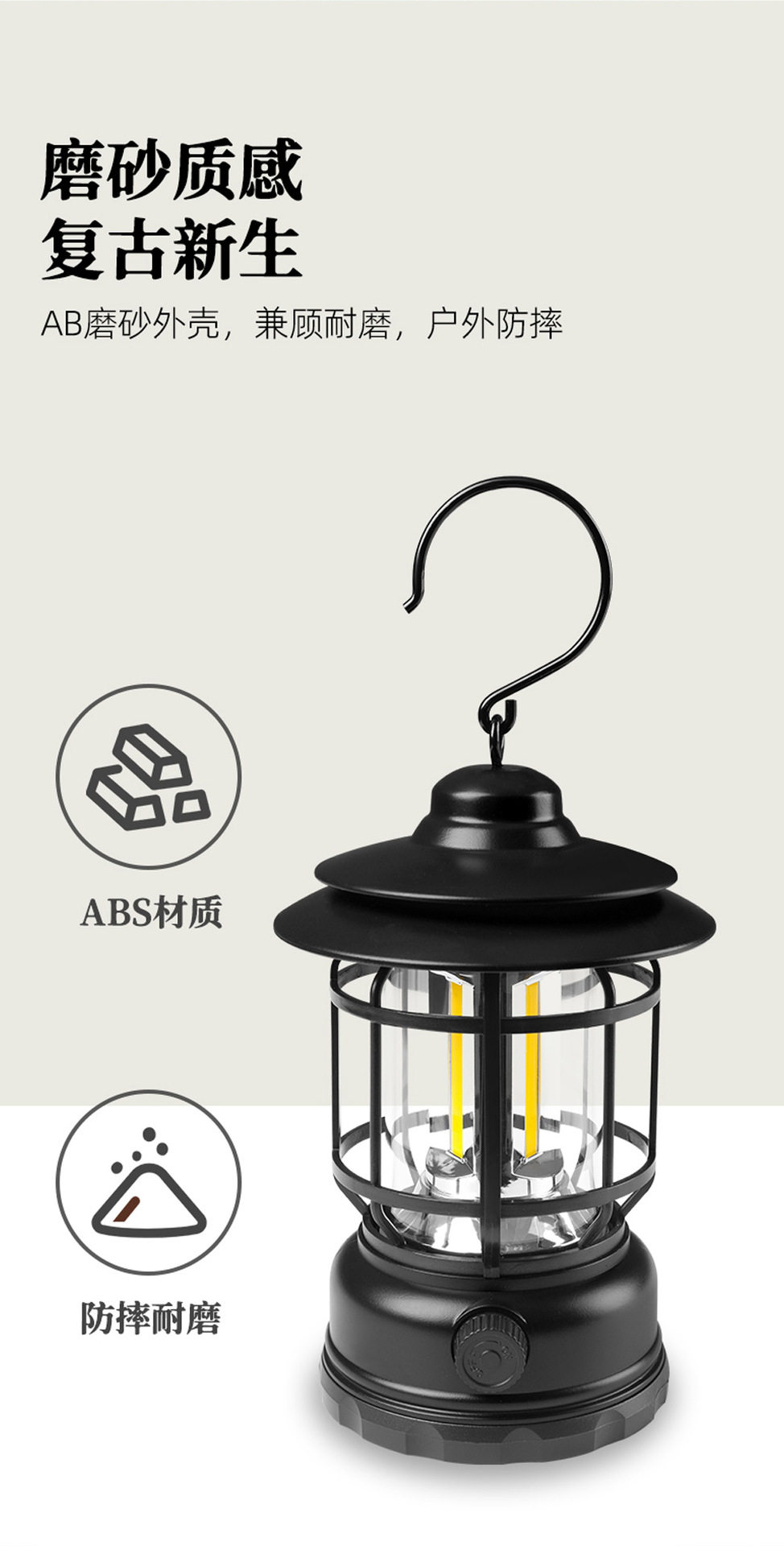 Lytle outdoor camping retro camping lantern outdoor special tent light cob rechargeable lighting portable lamp