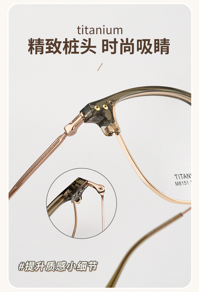 New Olive Green Pure Titanium Metal Polygonal Glasses Frame Eyebrow Frame Fashion High-end All-match Men's and Women's 8151