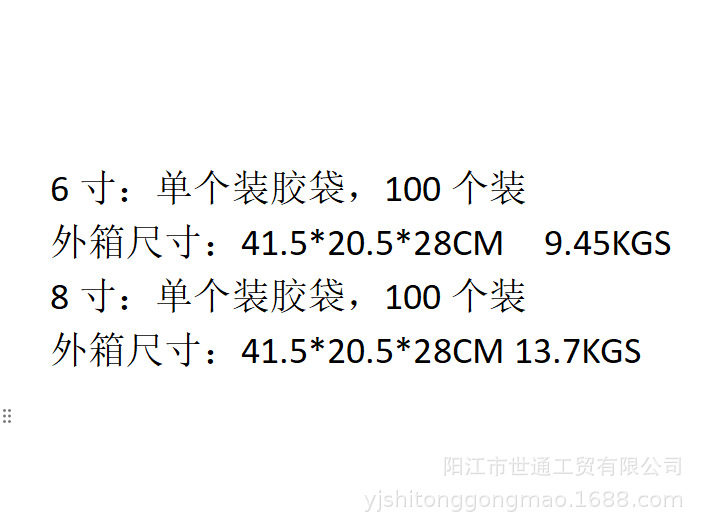 | Specification | 6inch (in bulk in plastic bags),8inch (in bulk in plastic bags),2 pcs 6inch +2 pcs 8inch individually boxed,6inch (bulk in plastic bags) black,8inch (bulk in plastic bags) black,2 pcs 6inch +2 pcs 8inch individually boxed black |
