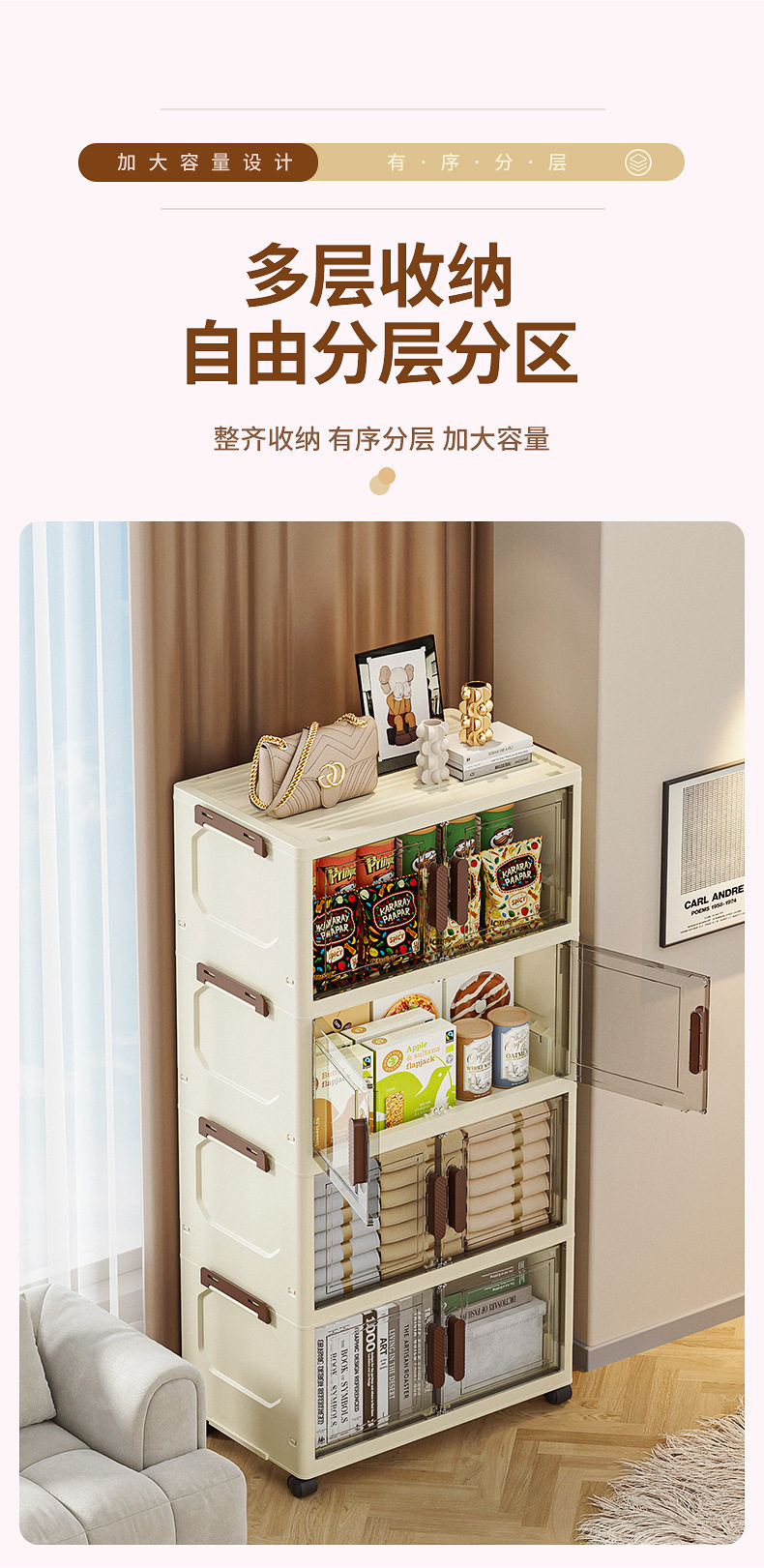 Installation-Free Folding Storage Box Storage Cabinet Snack Storage Cabinet Household Bedroom Clothes Plastic Clothes Storage Box