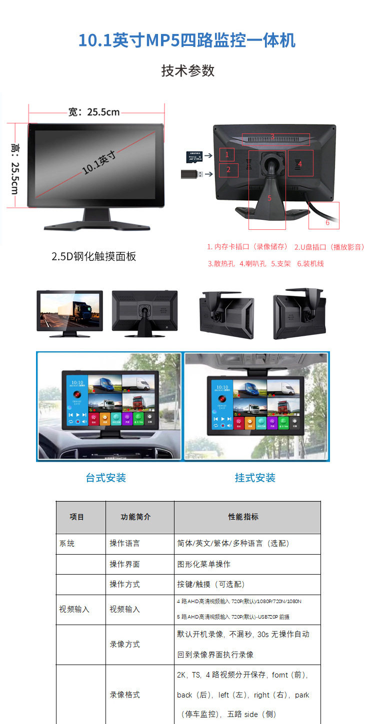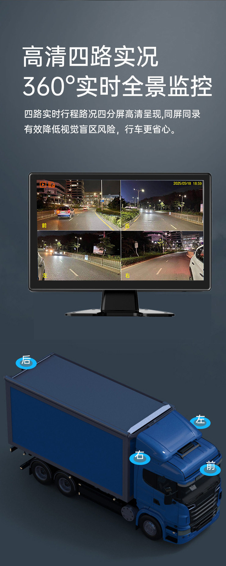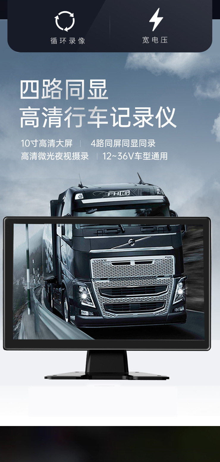 7-inch 10.1-inch truck driving recorder touch voice control four-way monitoring vehicle reversing image quanzhi four-way