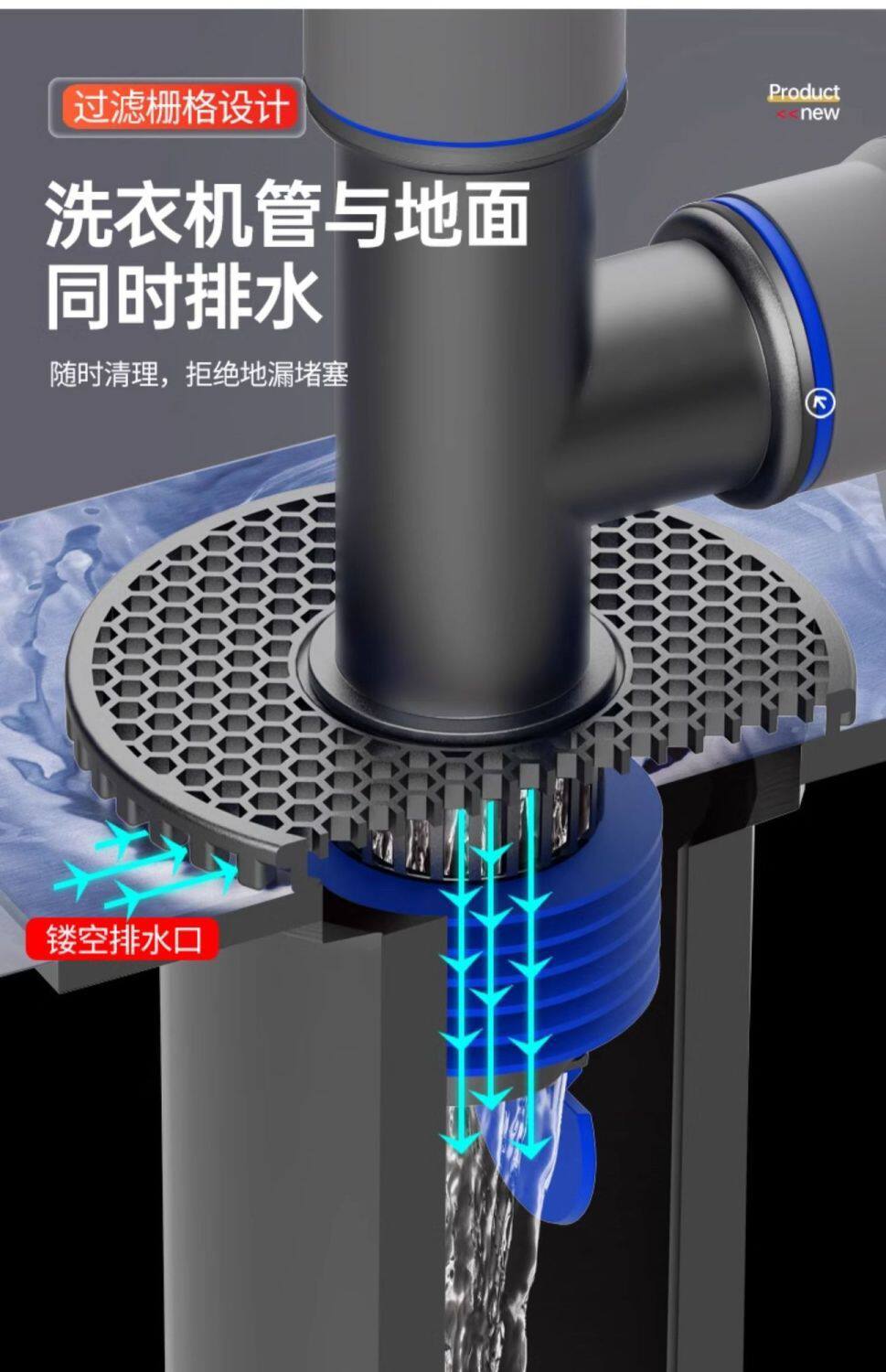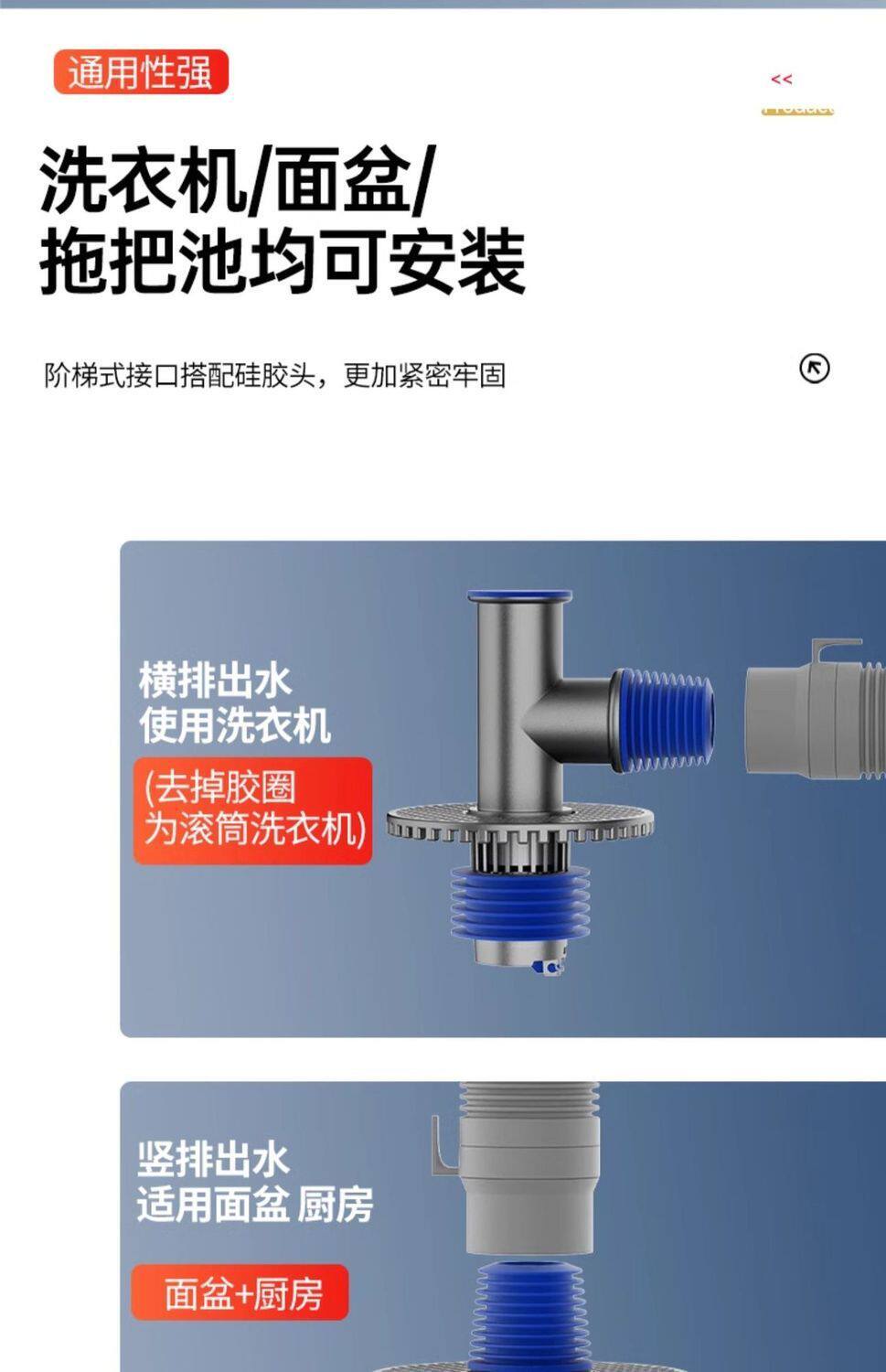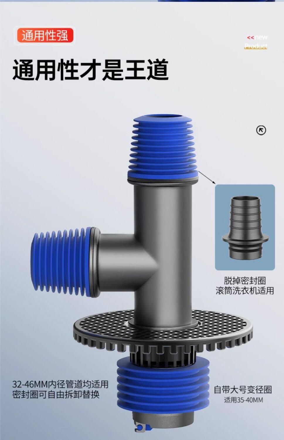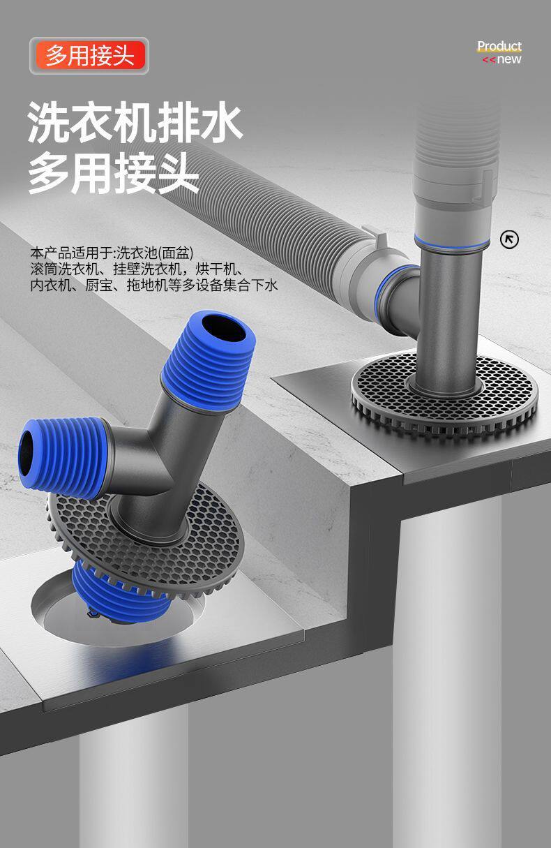 Balcony washing machine floor drain interface docking device three-way sewer diverter one-two drainage pipe anti-odor artifact
