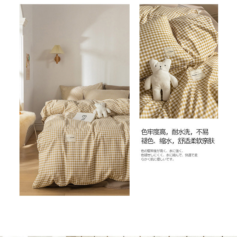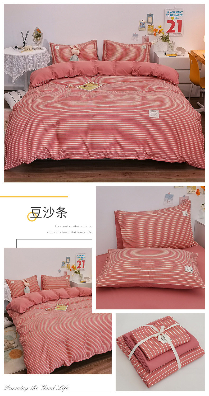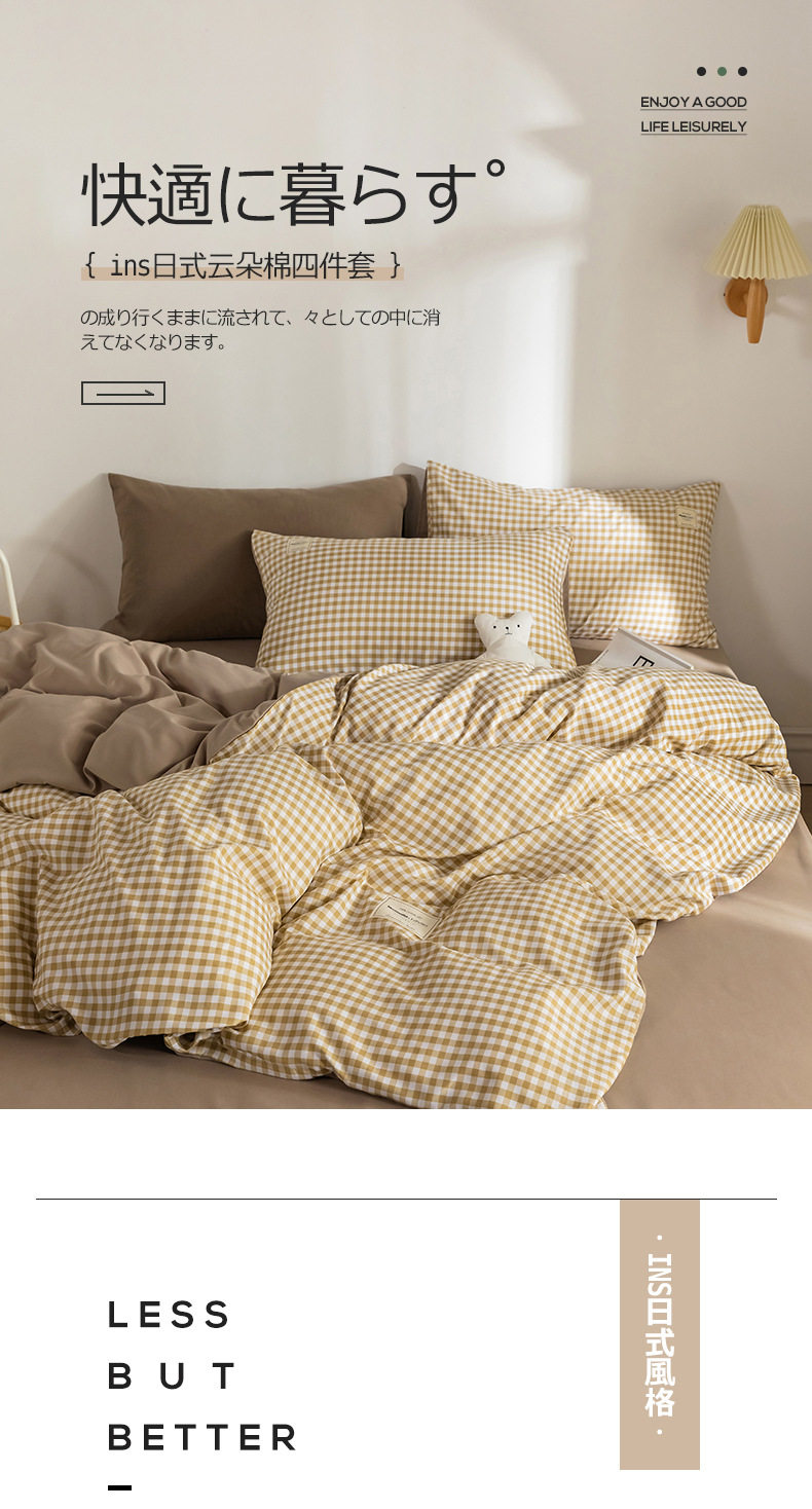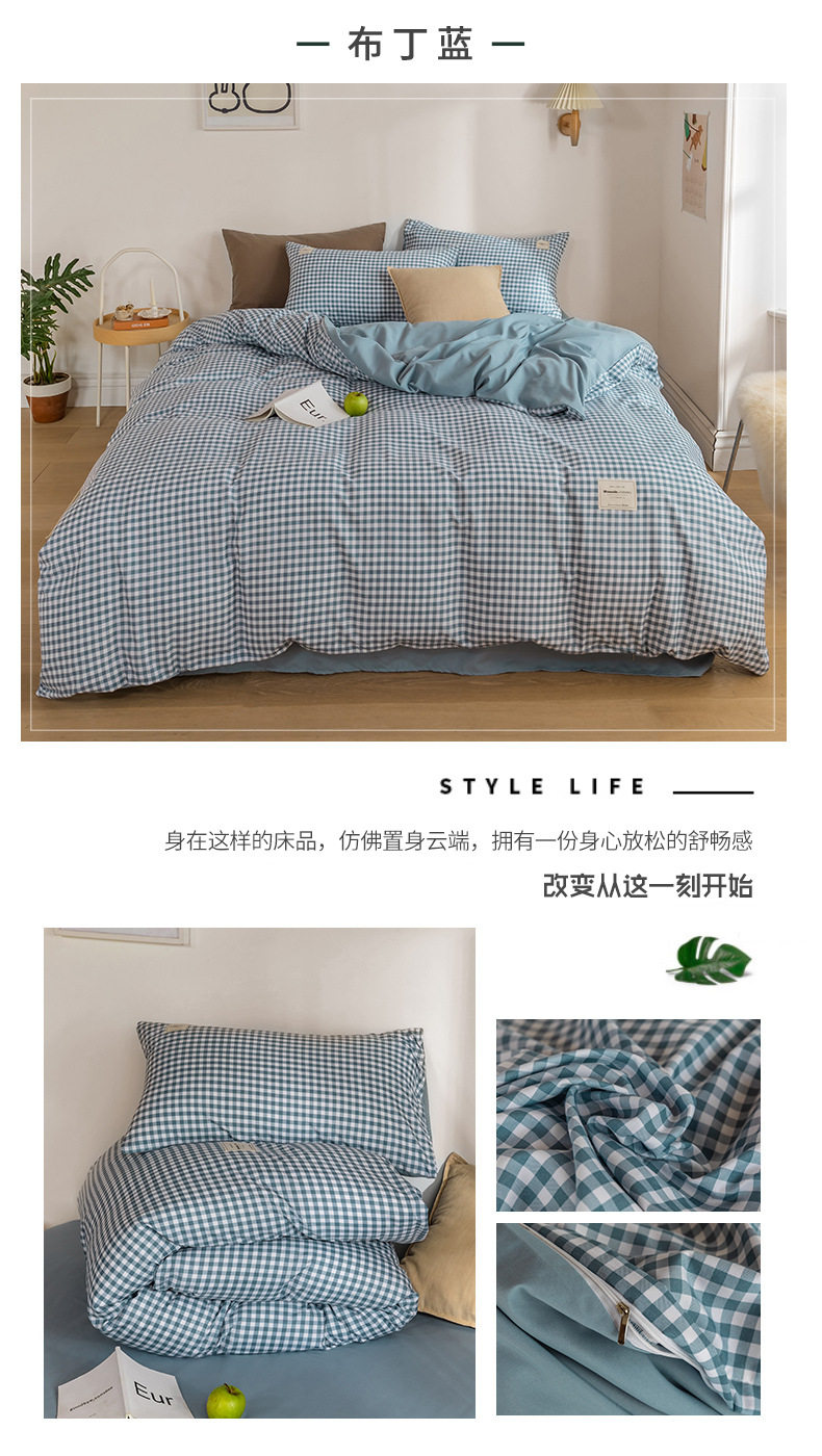 Japanese style unprinted wind water washed cotton sanding bed four-piece set student dormitory bed sheet quilt cover three-piece set wholesale