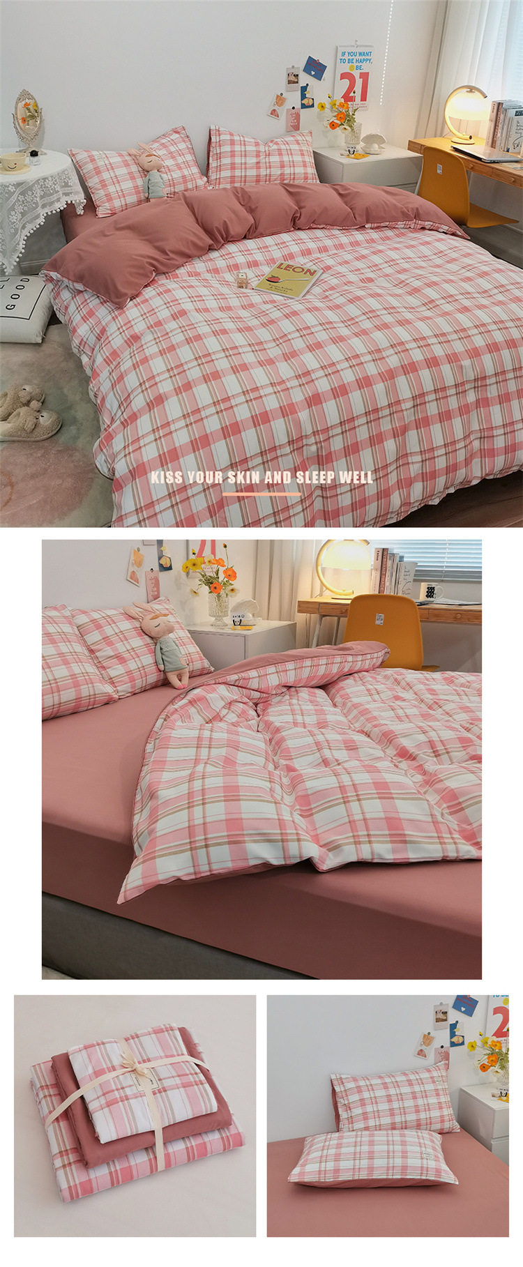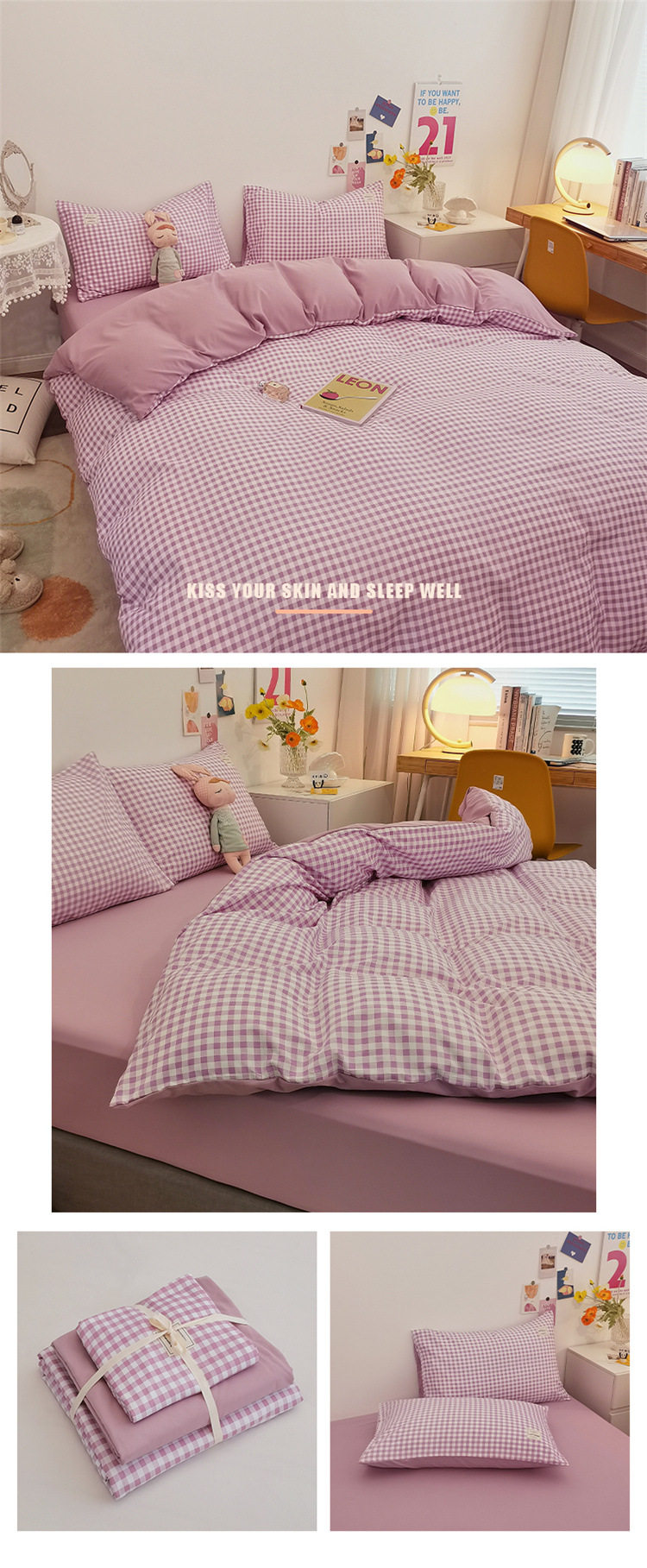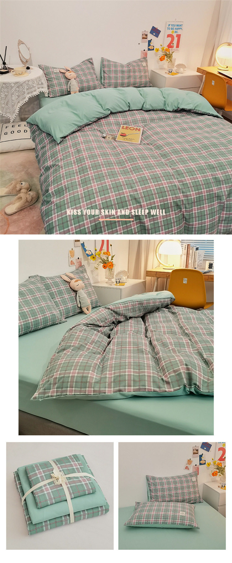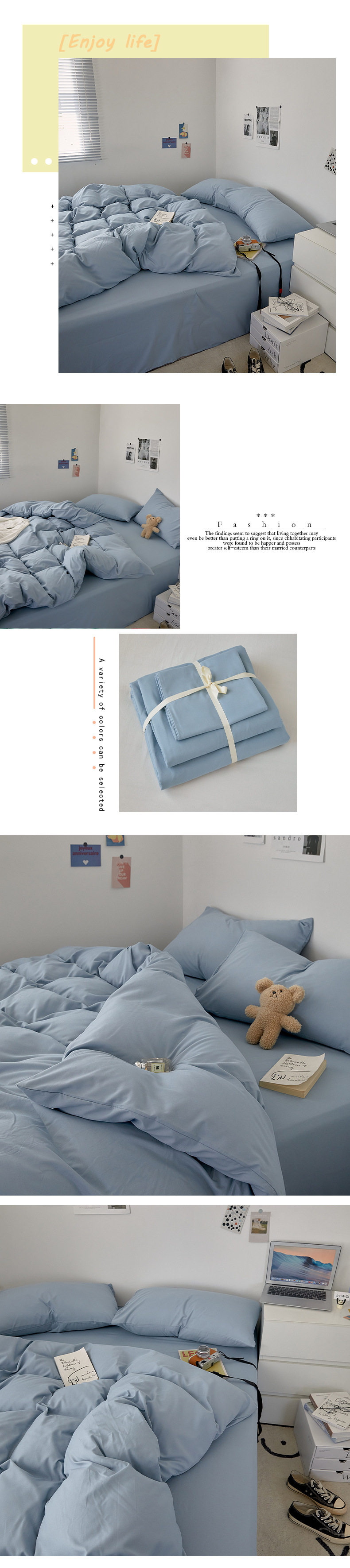 Japanese style unprinted wind water washed cotton sanding bed four-piece set student dormitory bed sheet quilt cover three-piece set wholesale