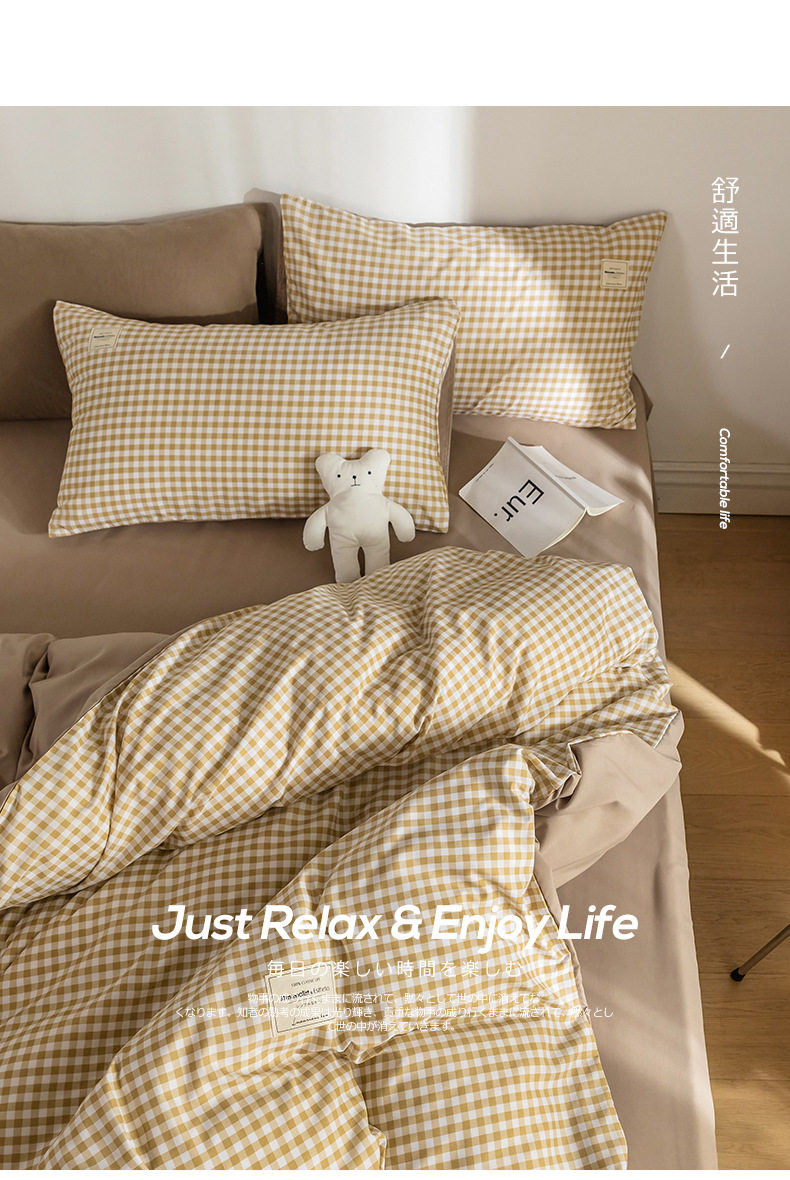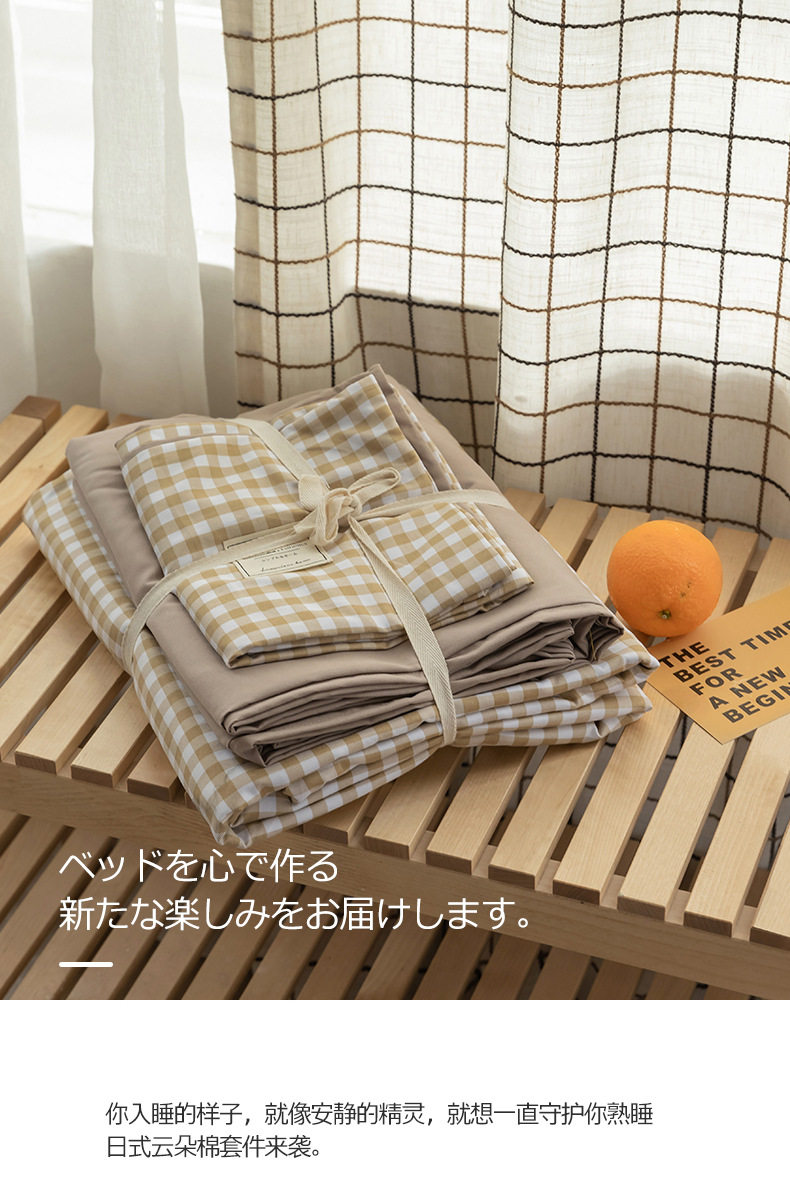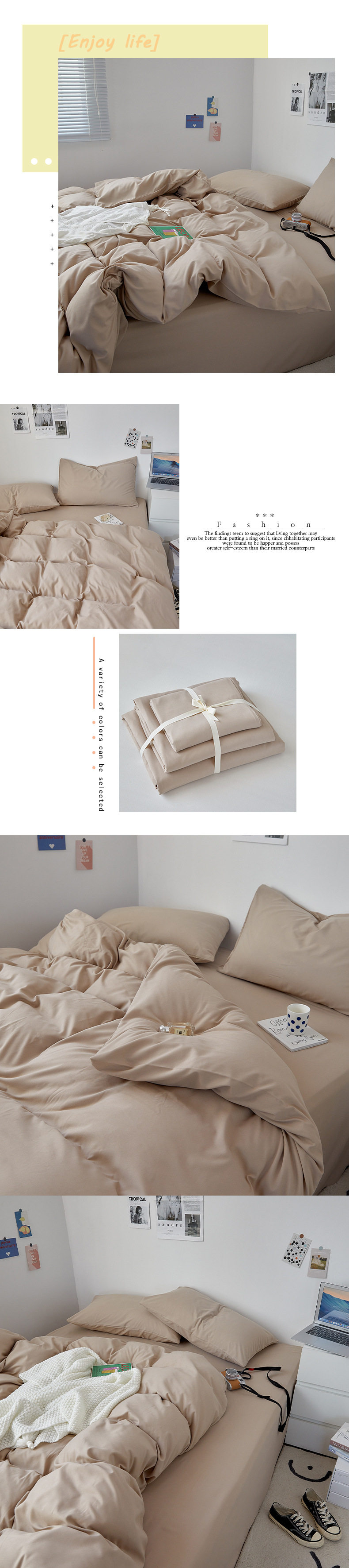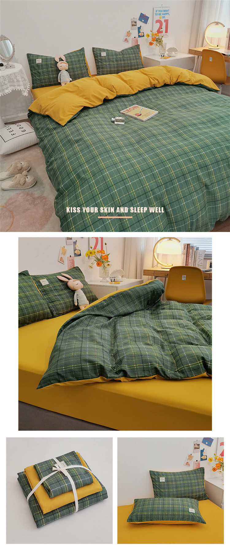 Japanese style unprinted wind water washed cotton sanding bed four-piece set student dormitory bed sheet quilt cover three-piece set wholesale