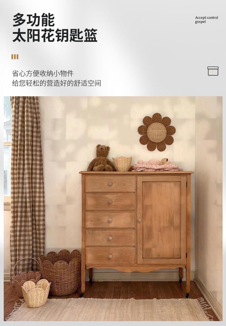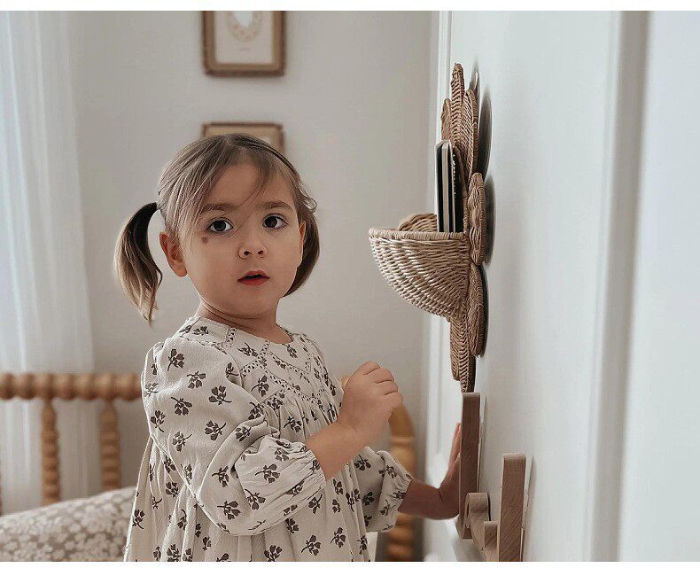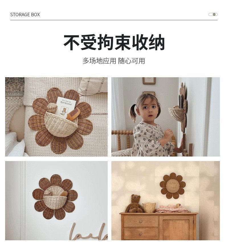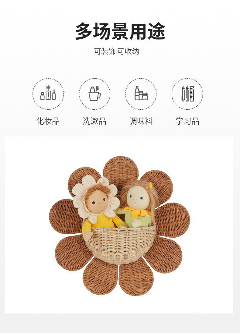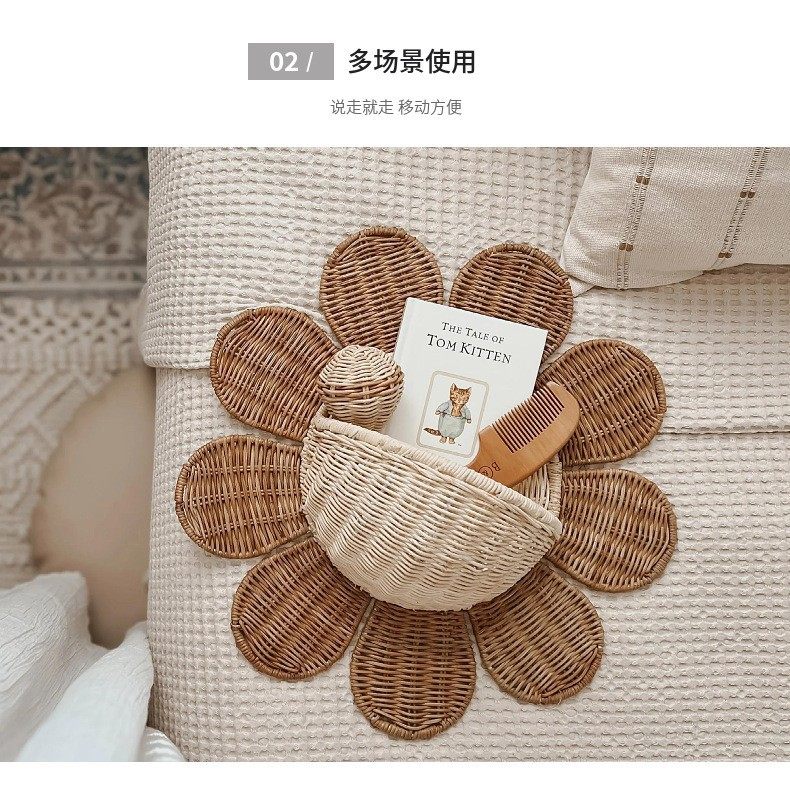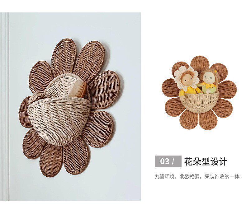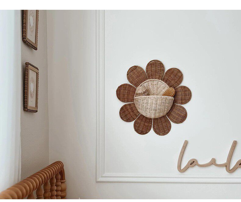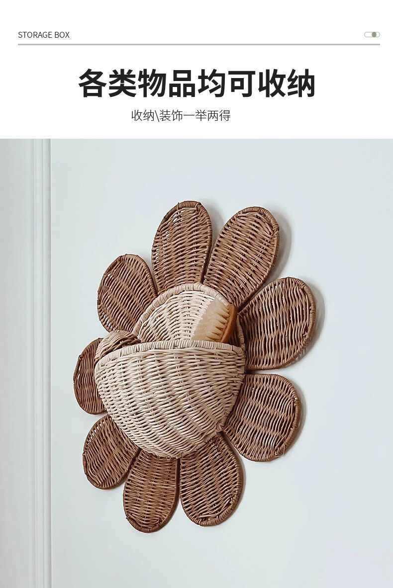 Nordic Rattan Woven Basket Entry Key Storage Basket Bathroom Sun Flower Wall Hanging Basket Children's Room Decorative Wall Hanging Basket
