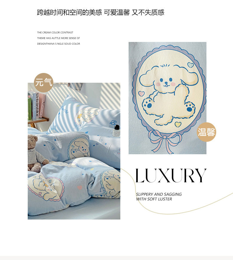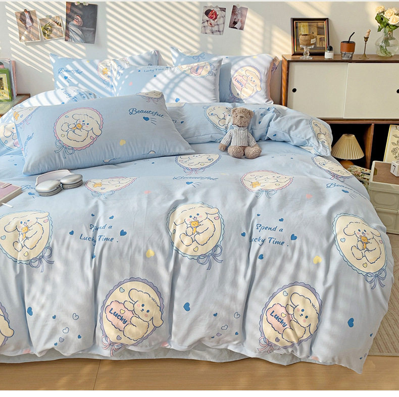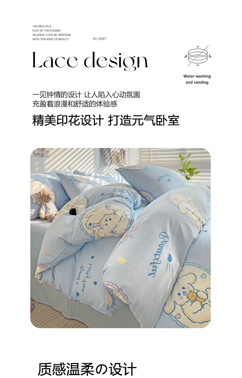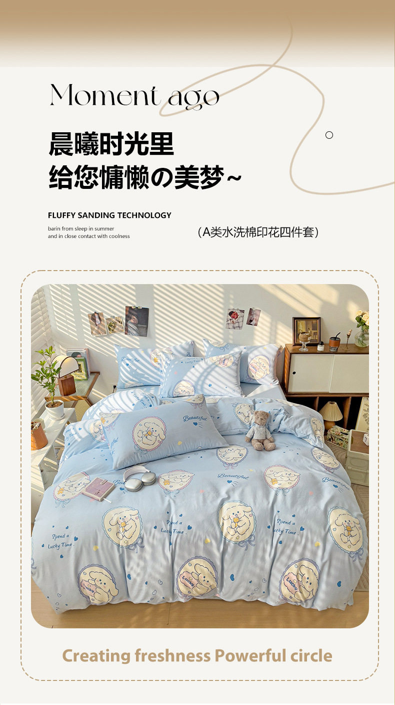 Small fresh aloe vera cotton four-piece set student dormitory three-piece sheets washed cotton quilt cover bedding wholesale