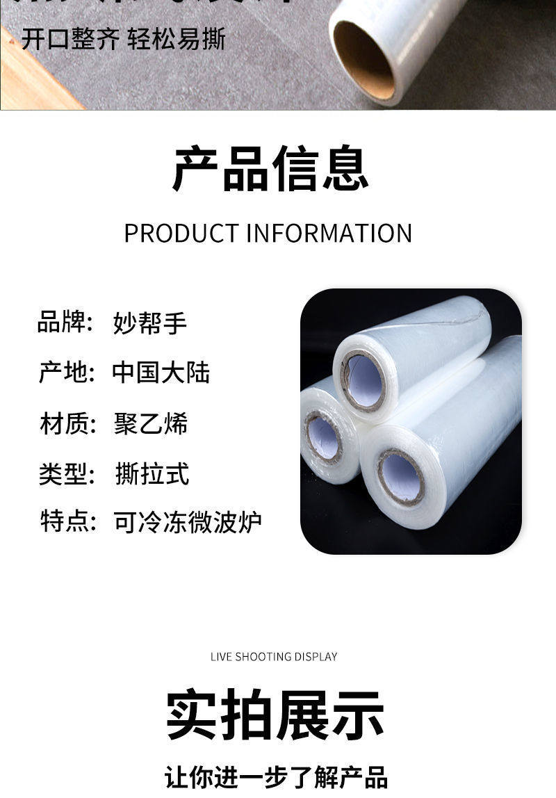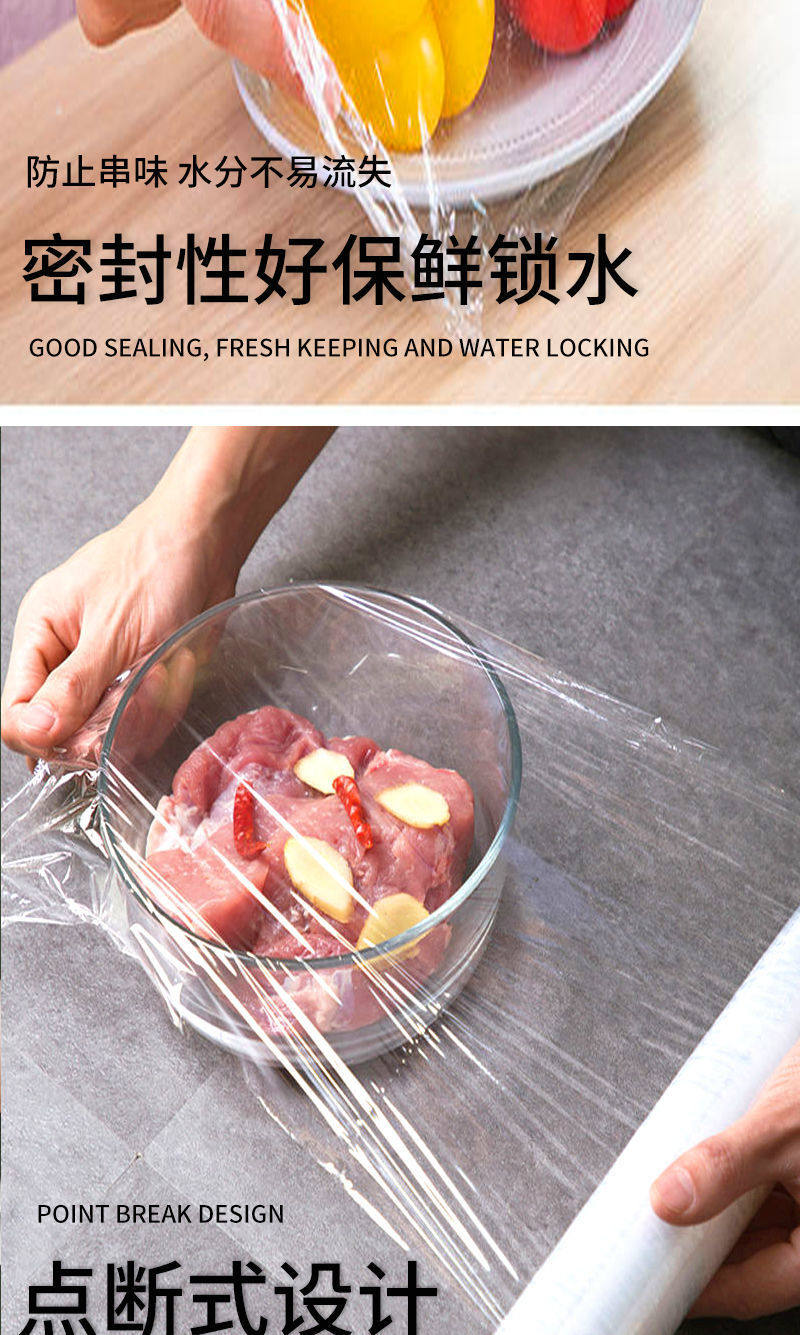 Fresh-keeping film PE household point-break-free knife-free cutting hand-tear breakpoint food grade refrigerator kitchen tear-up factory wholesale