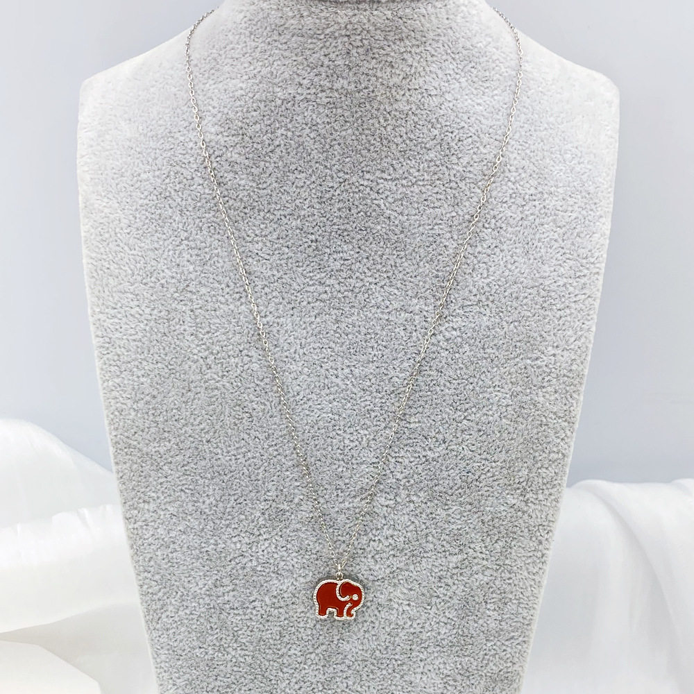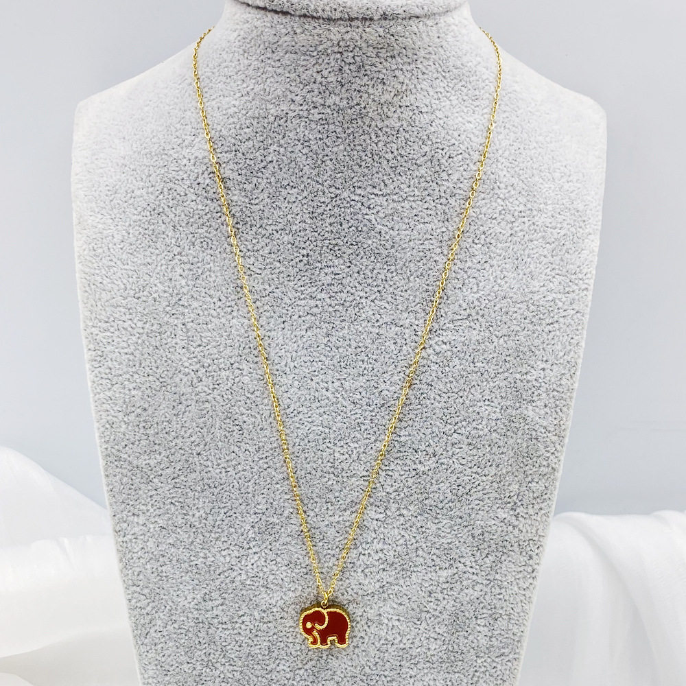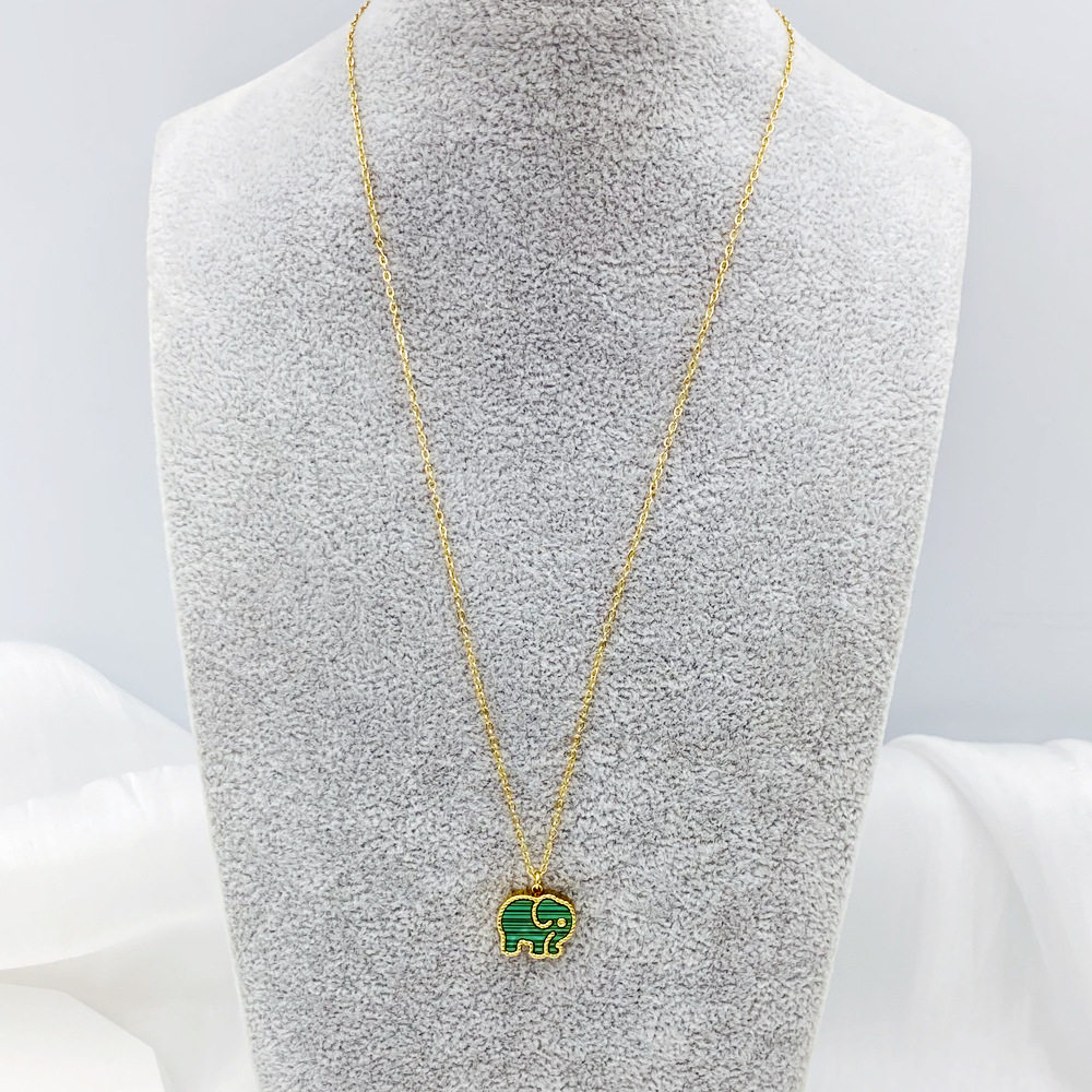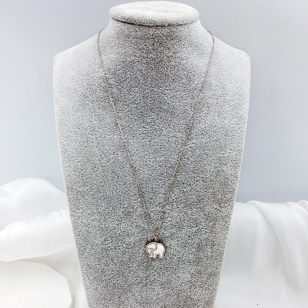 Auspicious baby elephant black and white double-sided beaded shell white fritillary necklace clavicle chain female titanium steel plated 18K gold
