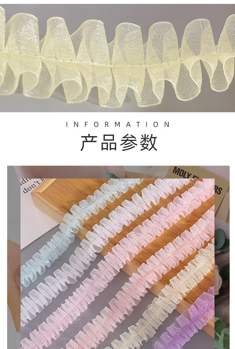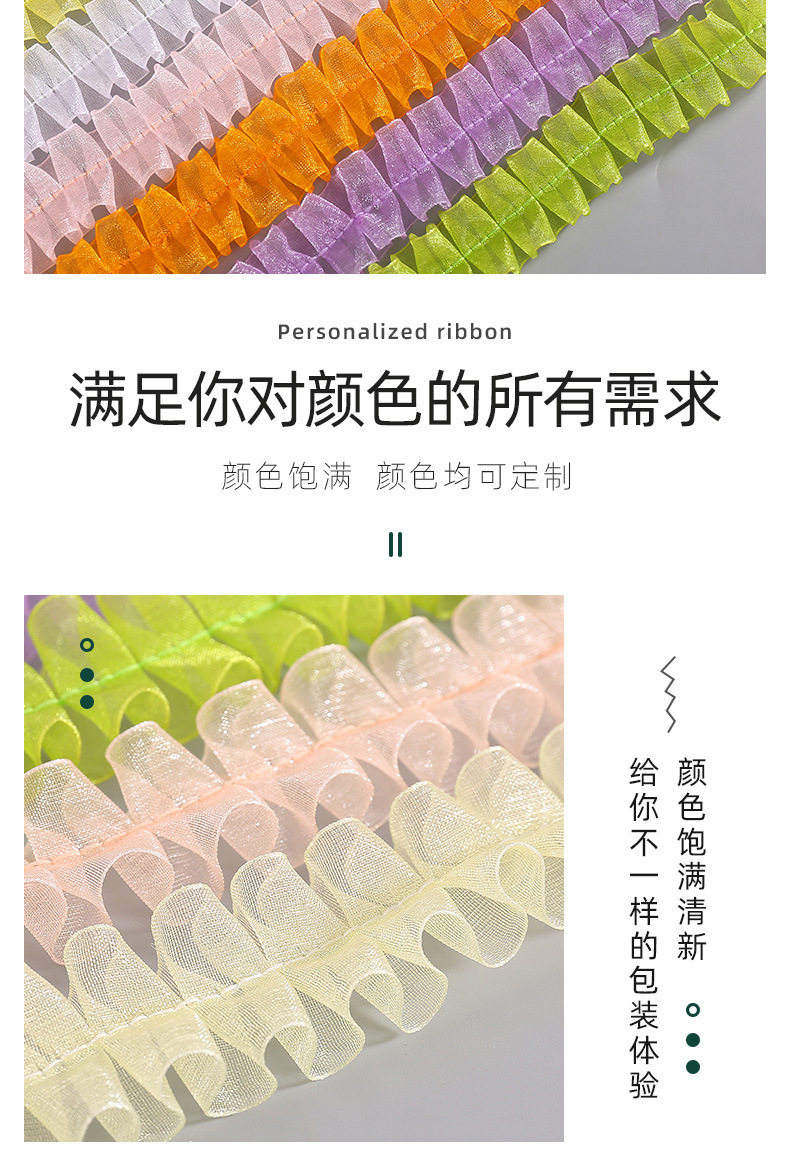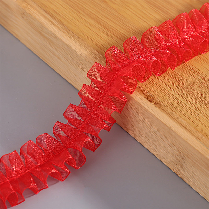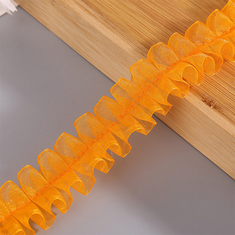 in stock 2.5cm color pleated lace I-shaped snow yarn belt DIY handmade decorative clothing accessories wholesale