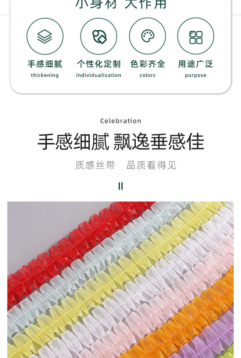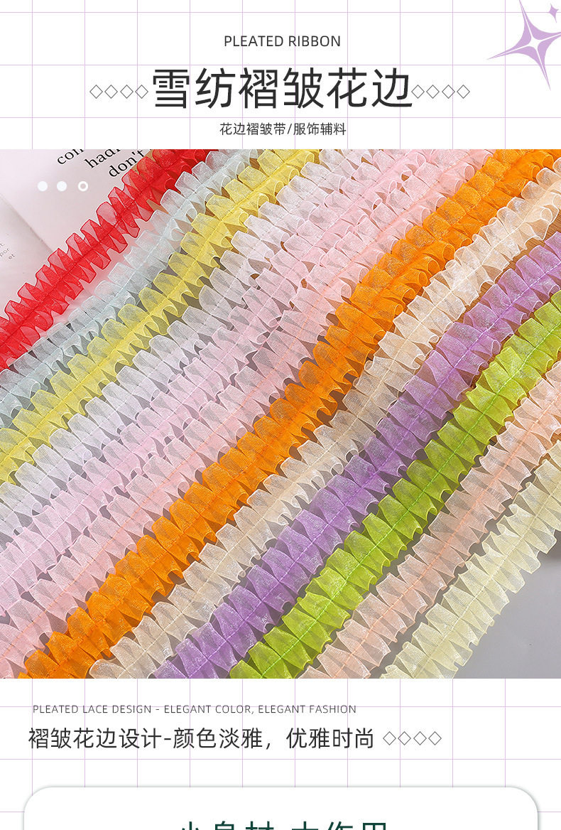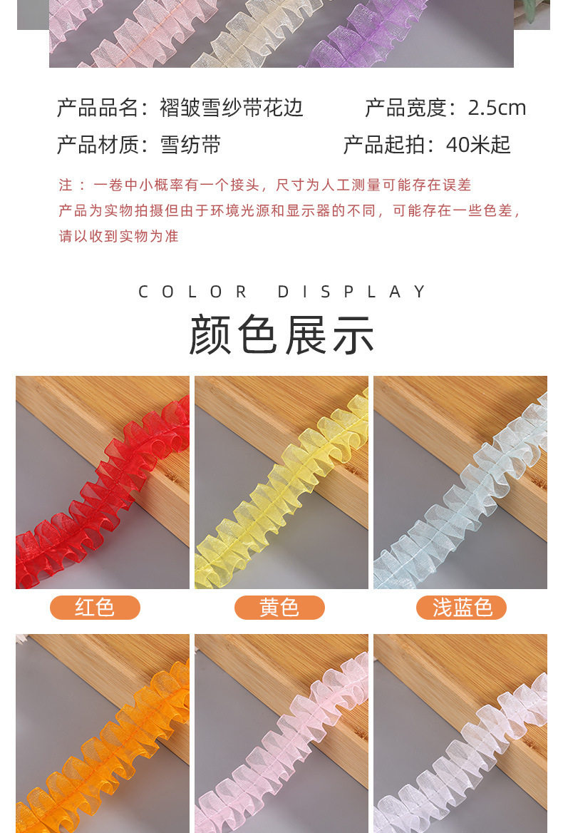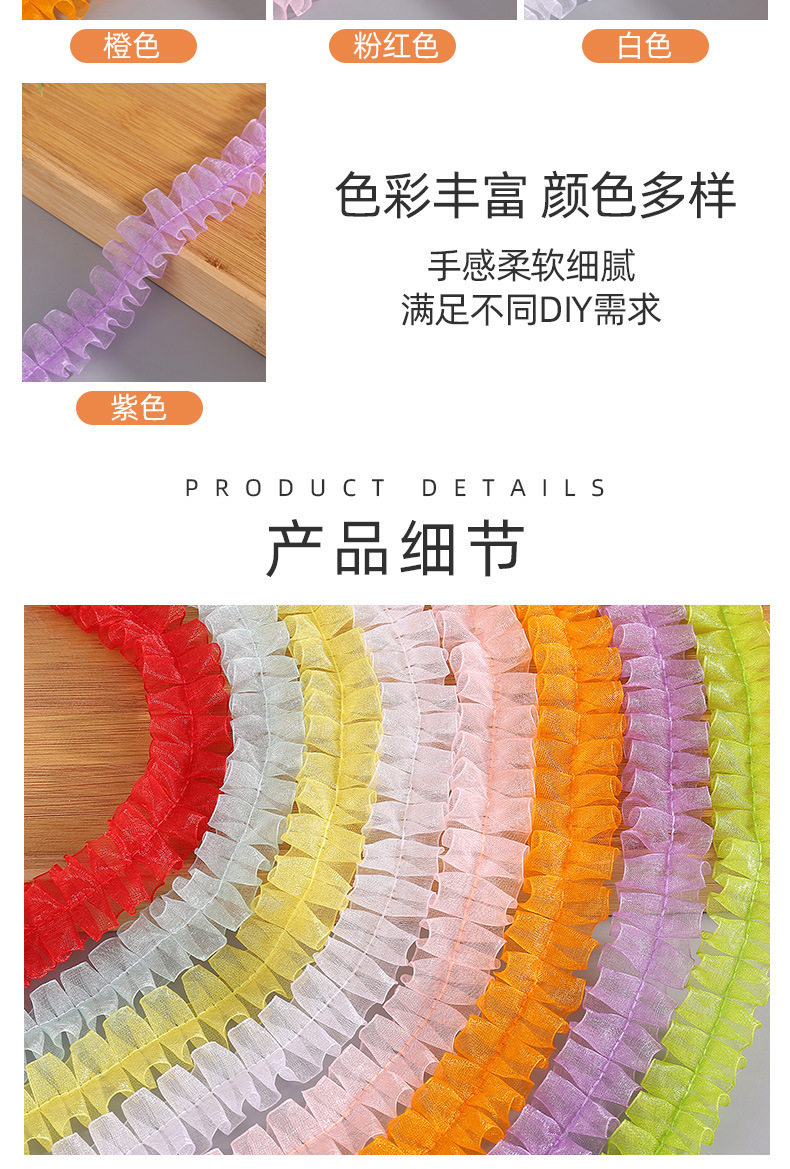 in stock 2.5cm color pleated lace I-shaped snow yarn belt DIY handmade decorative clothing accessories wholesale