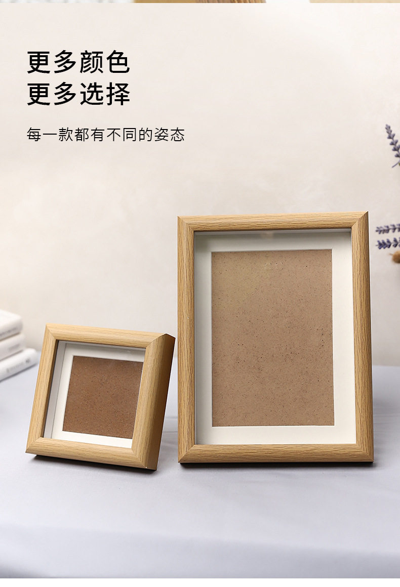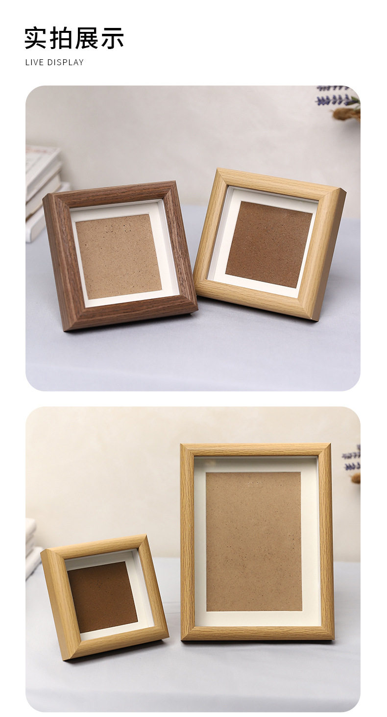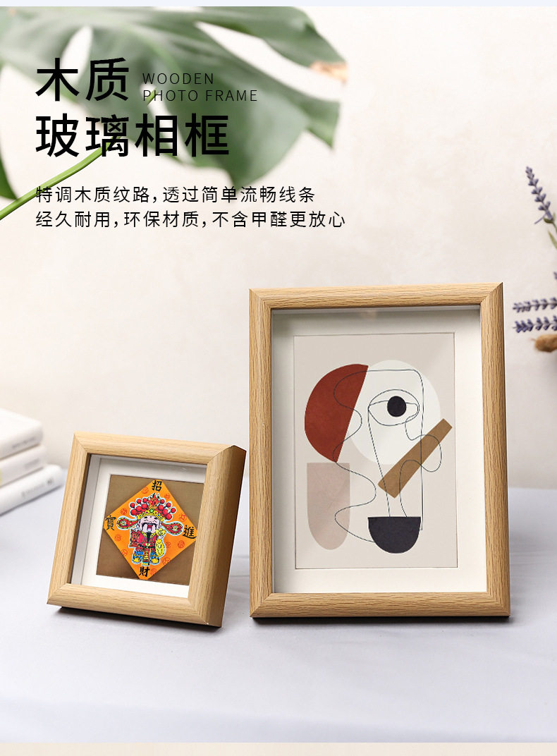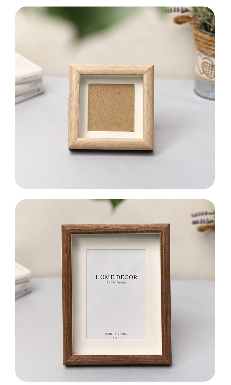 Wooden Photo Frame Glass Square 4inch Kidsren's Oil Pastel Framed Picture Frame DIY Photo Display Modern Simple Style