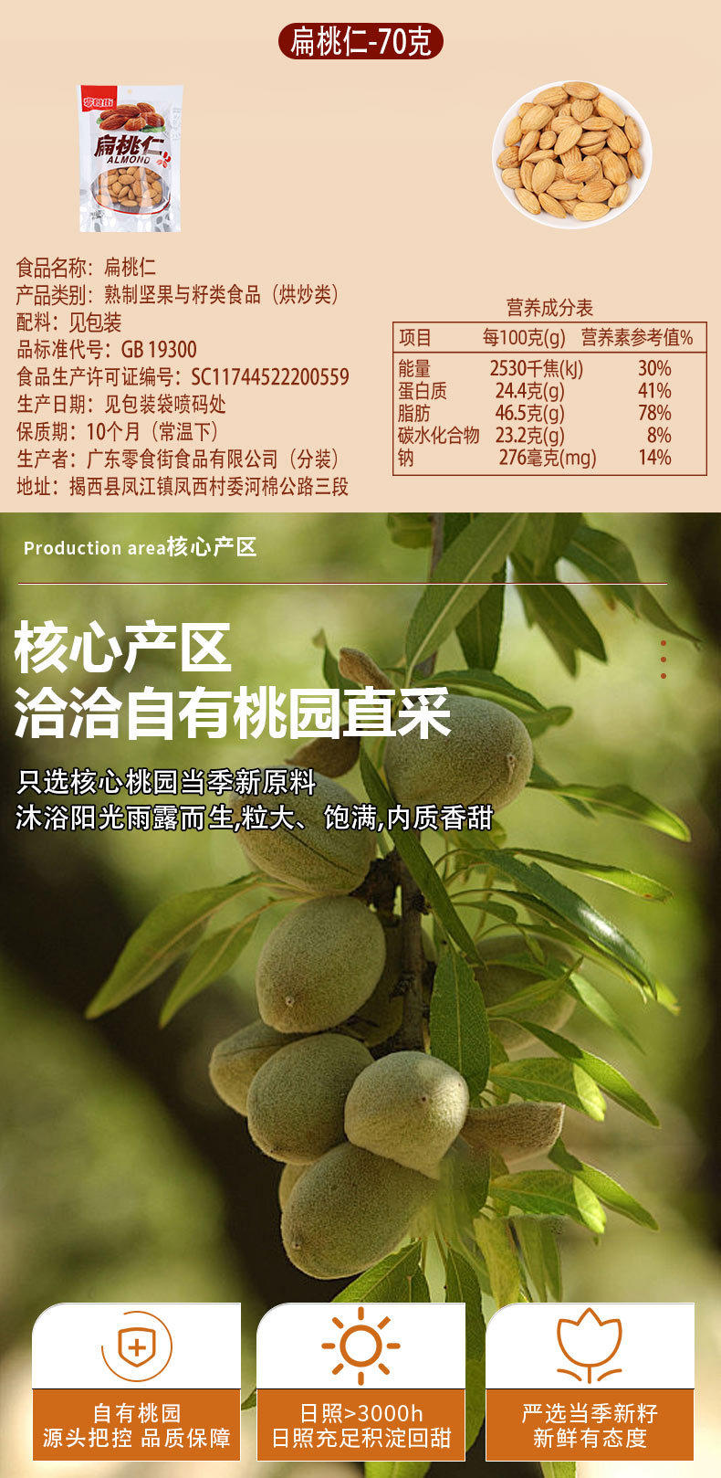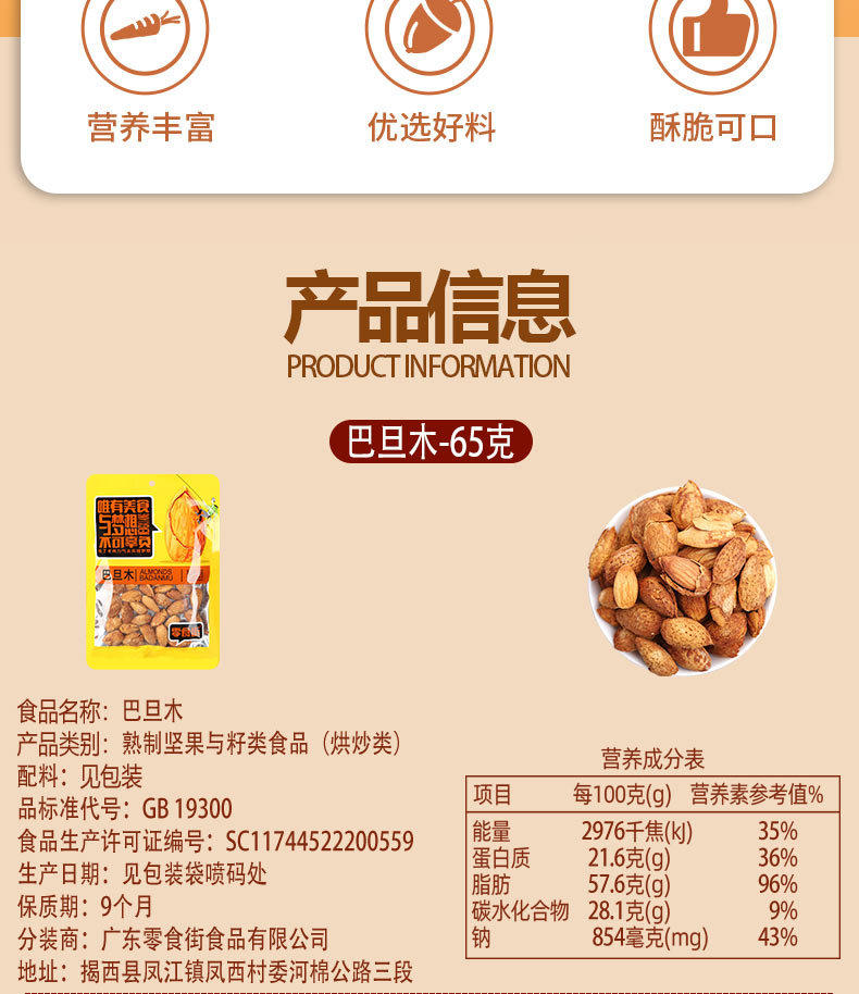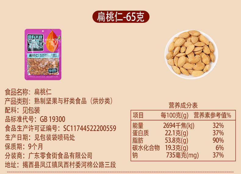 Packing specification Almond (65g),Almond (65g),Almond (70g)