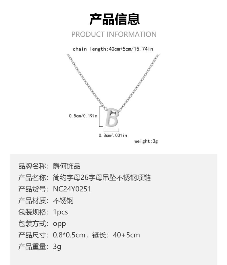 European and American cross-border fashion titanium steel 26 letters necklace temperament stainless steel simple all-match clavicle chain necklace