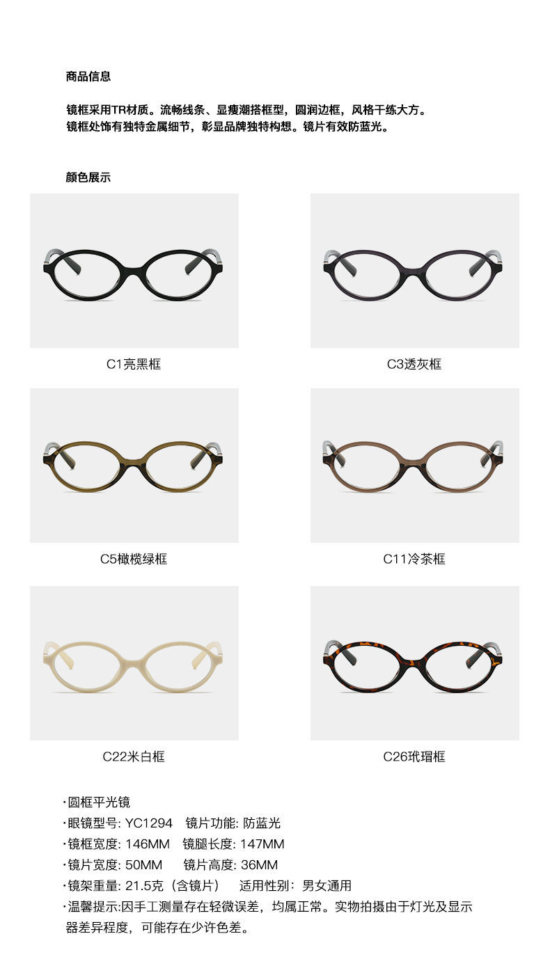 Frame Color C1 bright black frame,C3 gray transparent frame,C5 Olive Green Box,C11 cold tea box,C22 m white frame,C26 hawksbill box
