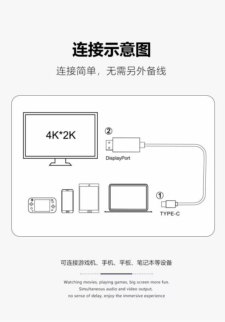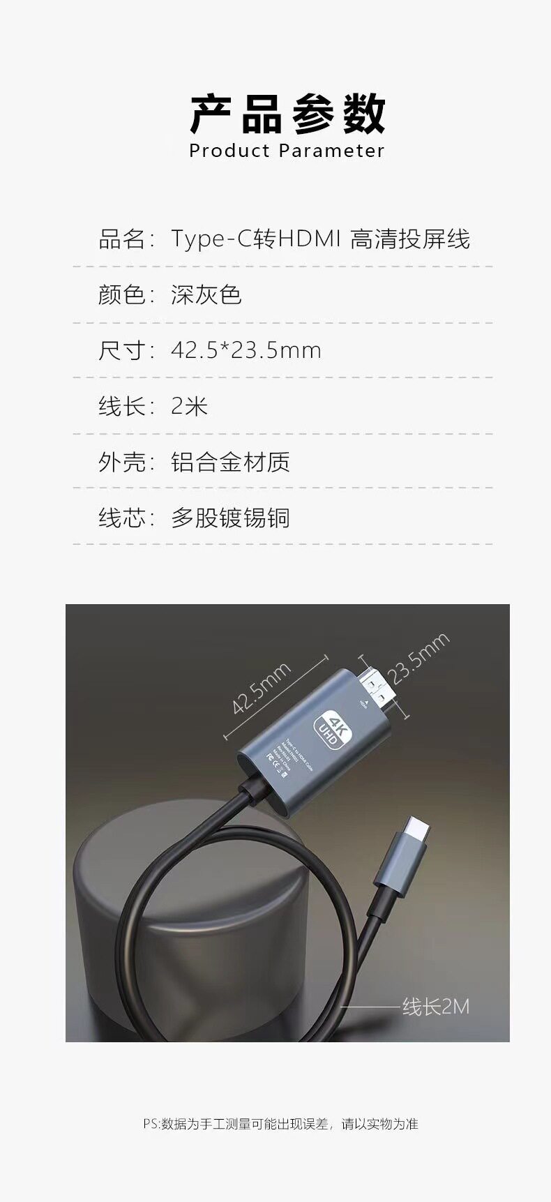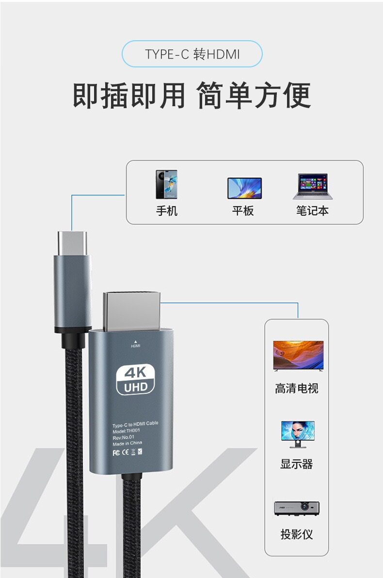 type c to HDMI Same Screen cable 4K60HZ High-definition Screen Projection Adapter cable TypeC to HDMI Video Adapter