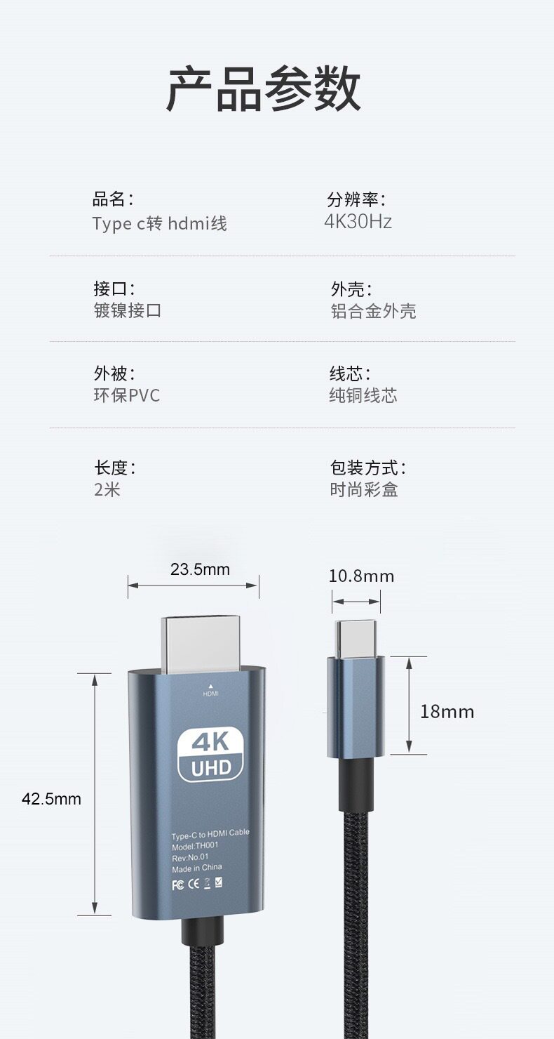 | Color | TH 4k30hz black (PVC),TH 4k30hz black (braided),TH 4k60hz black (PVC),TH 4k60hz black (braided),TH 8k60hz black |