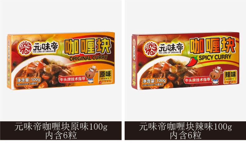 | Packing specification | Yuan Wei Di curry block original 100g * 1 box,Yuan Wei Di curry piece spicy 100g * 1 box |