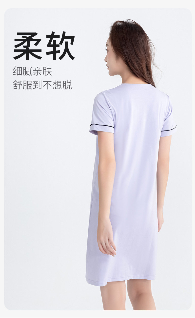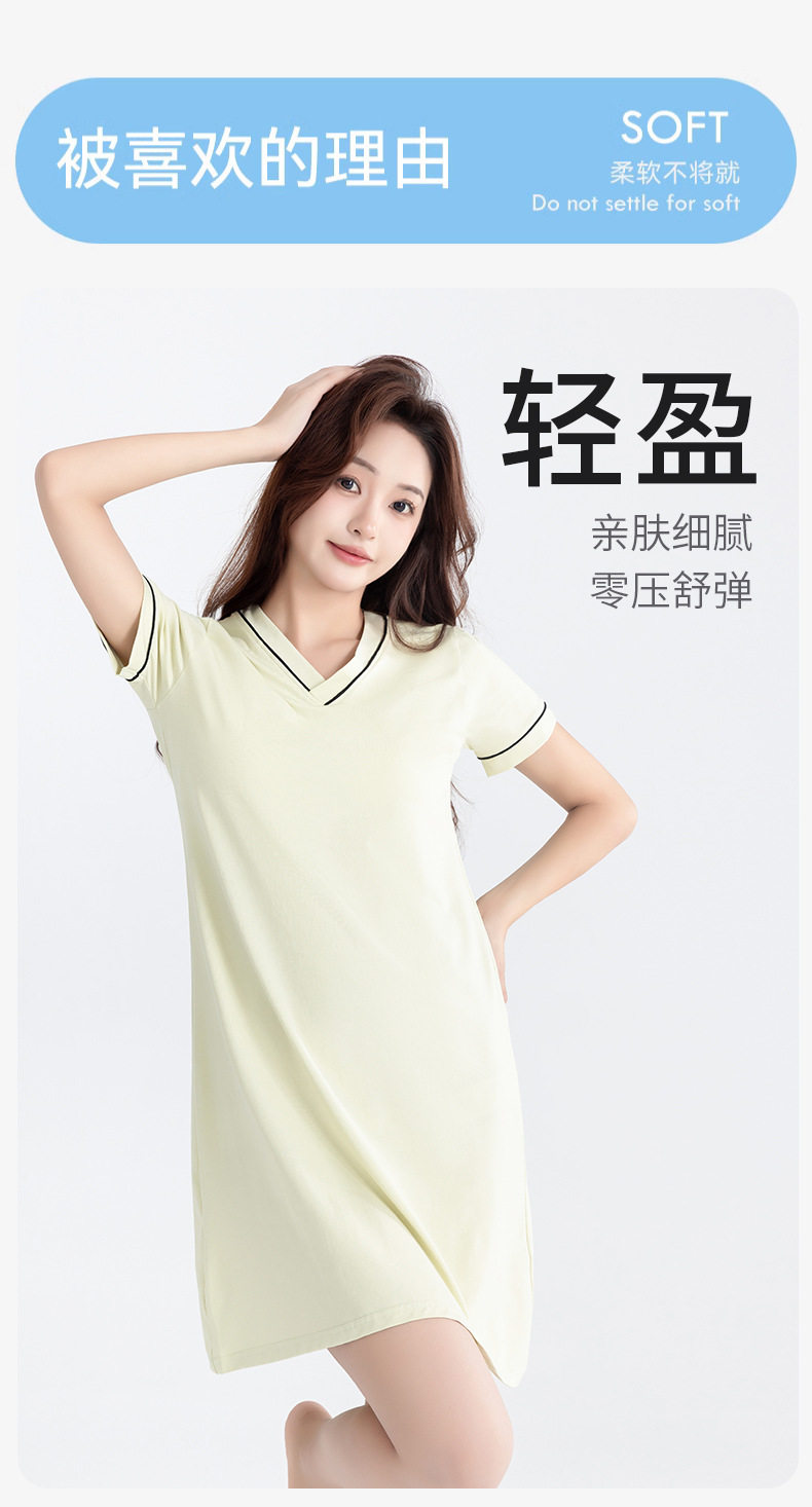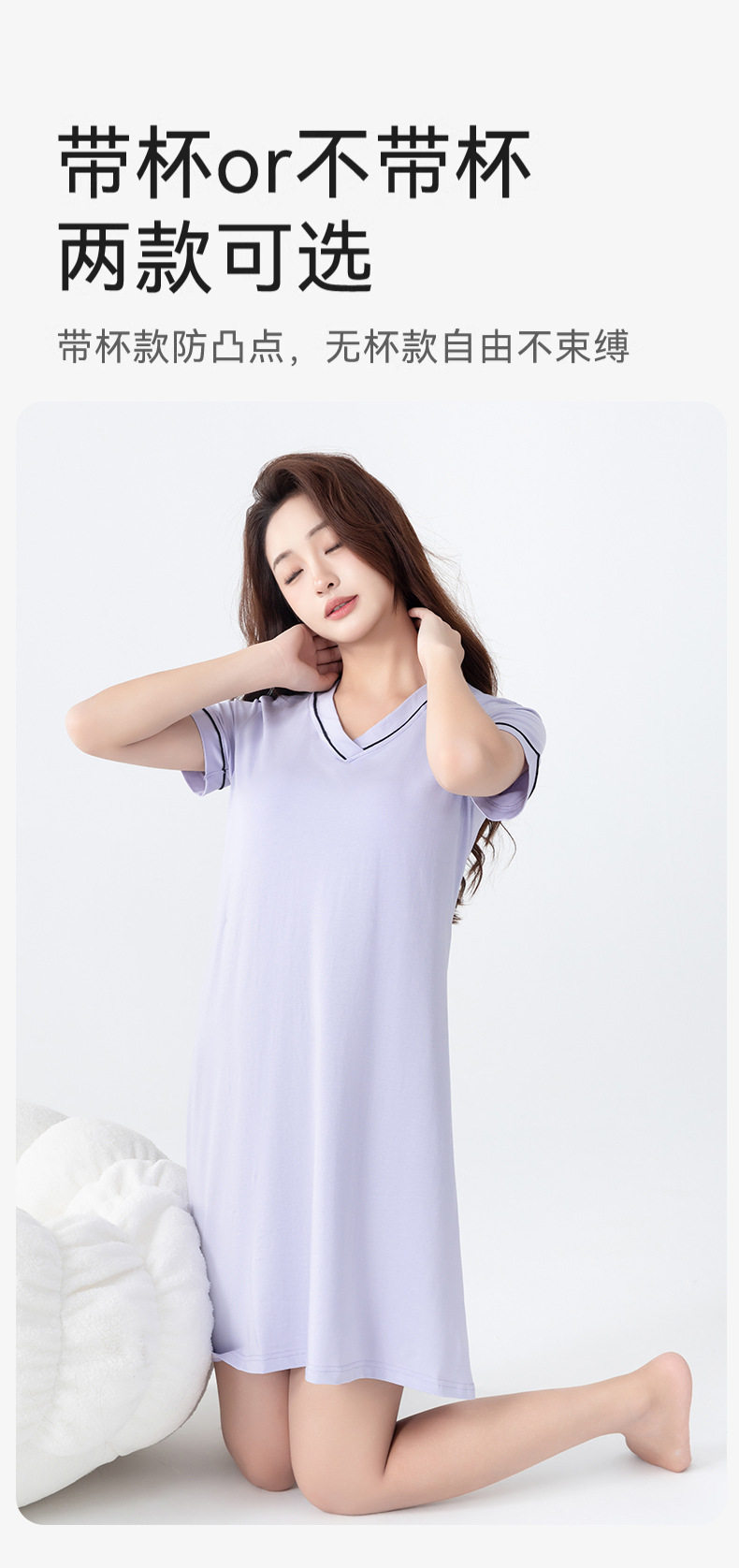 Short-Sleeved Nightgown Summer Women's Pure Cotton Belt Chest Pad All-in-One Outwear Pregnant Women's Pajamas High-grade plus size Home Dress