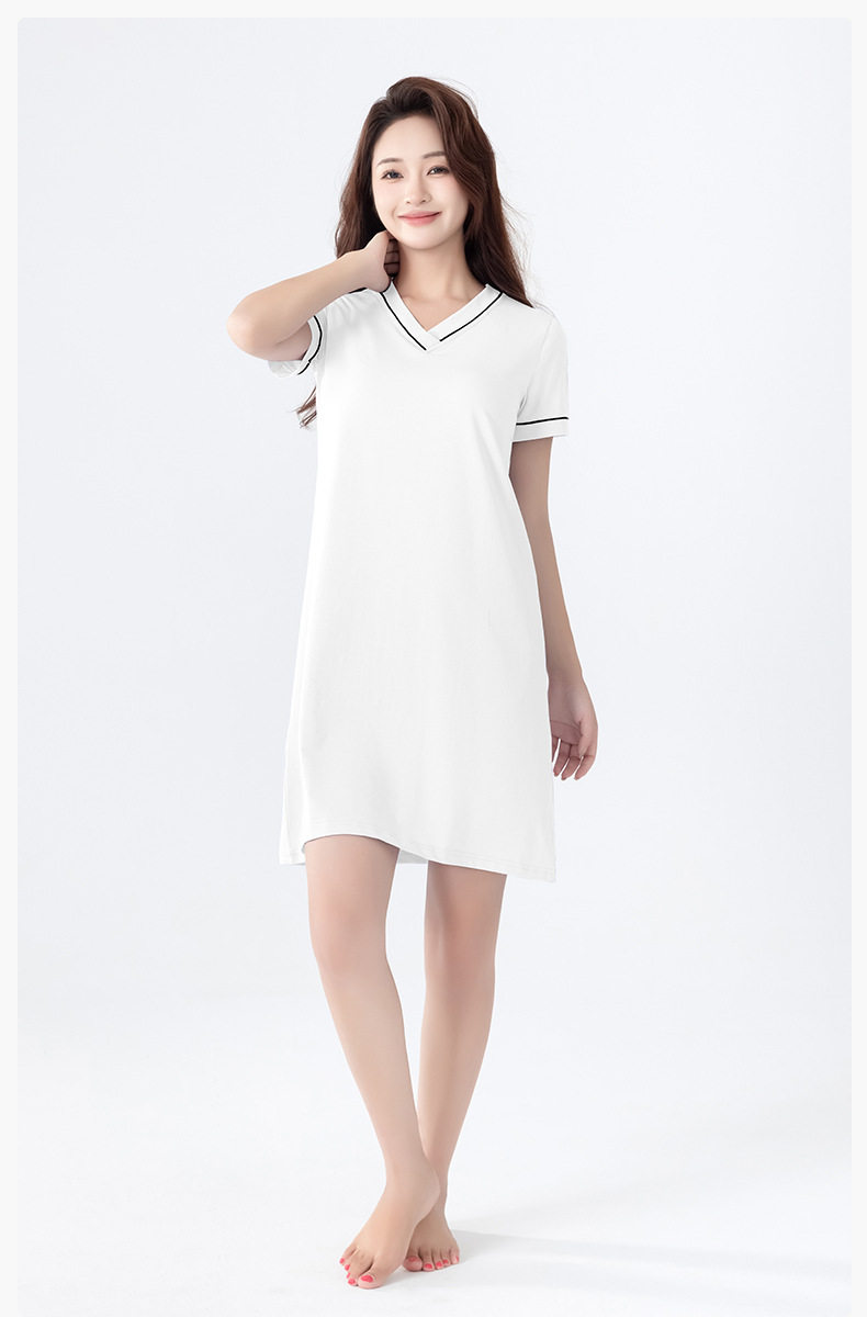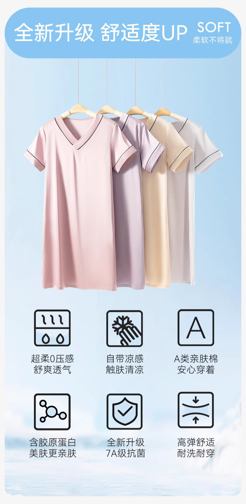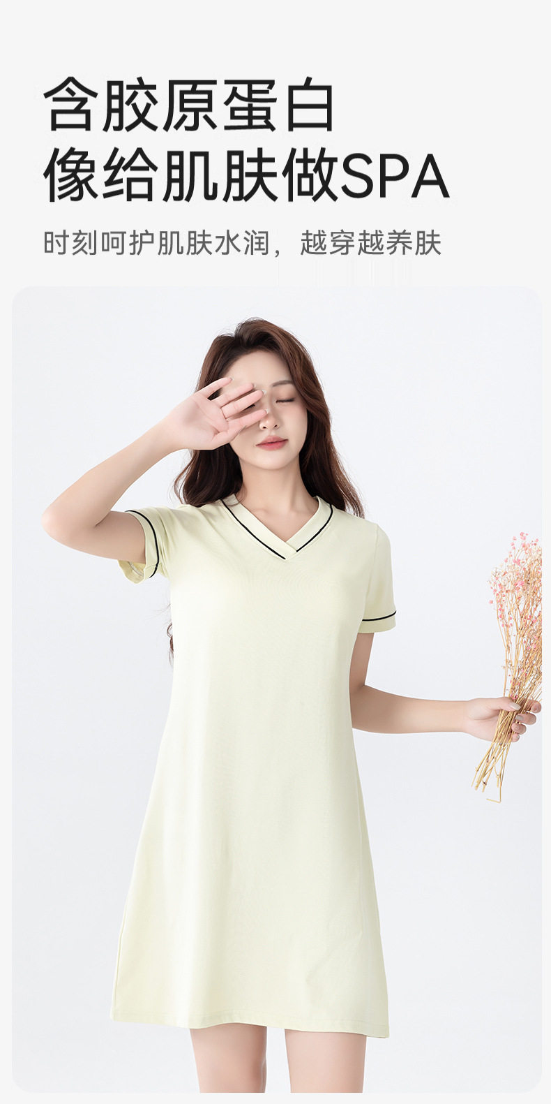 Short-Sleeved Nightgown Summer Women's Pure Cotton Belt Chest Pad All-in-One Outwear Pregnant Women's Pajamas High-grade plus size Home Dress