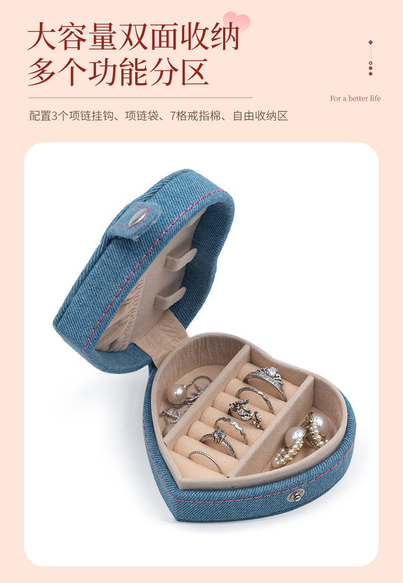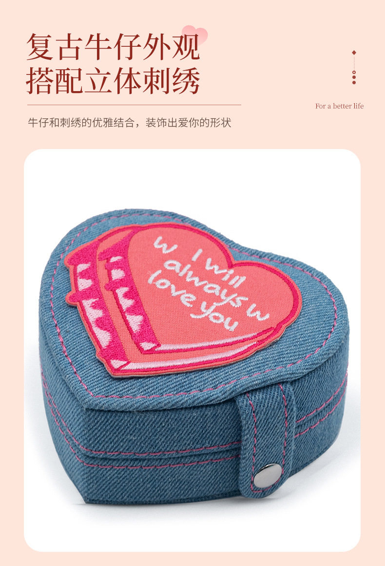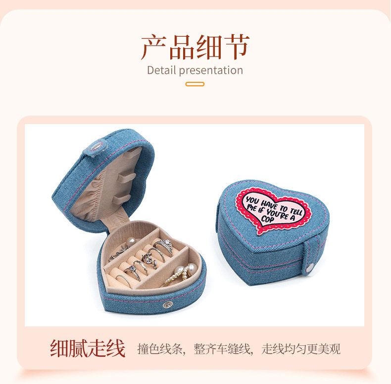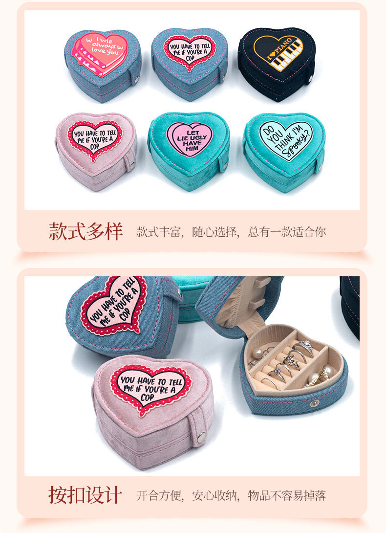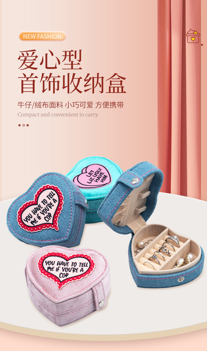 2024 new jewelry box portable heart-shaped box Denim flannel snap buckle storage box earrings jewelry box