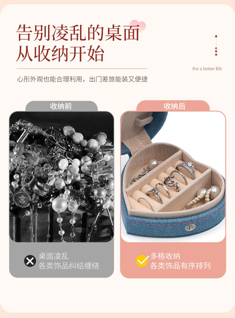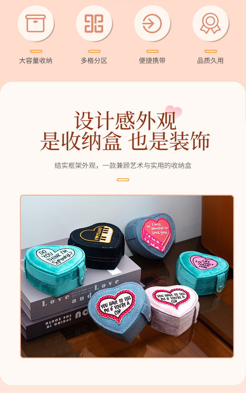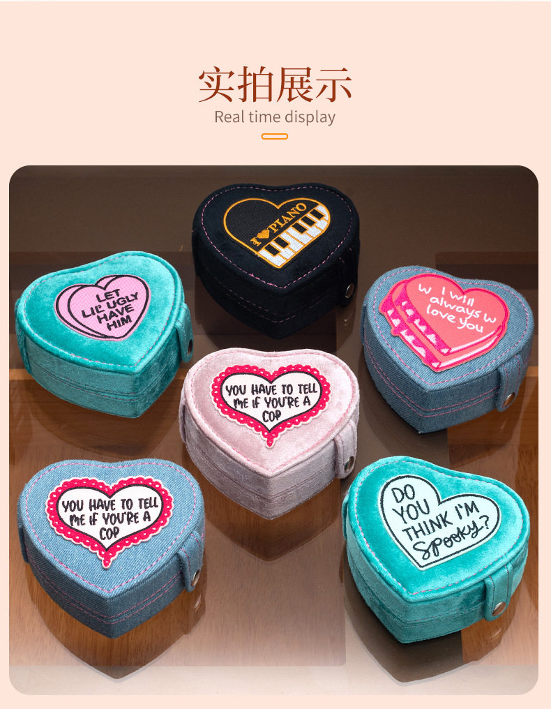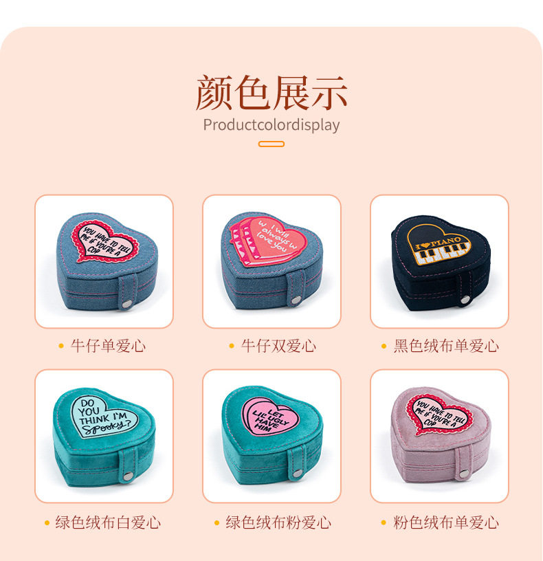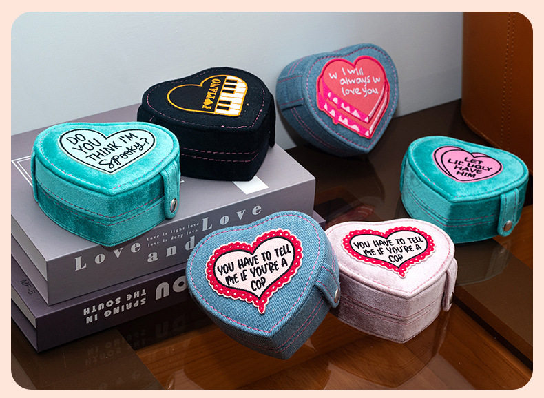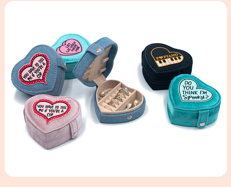 2024 new jewelry box portable heart-shaped box Denim flannel snap buckle storage box earrings jewelry box