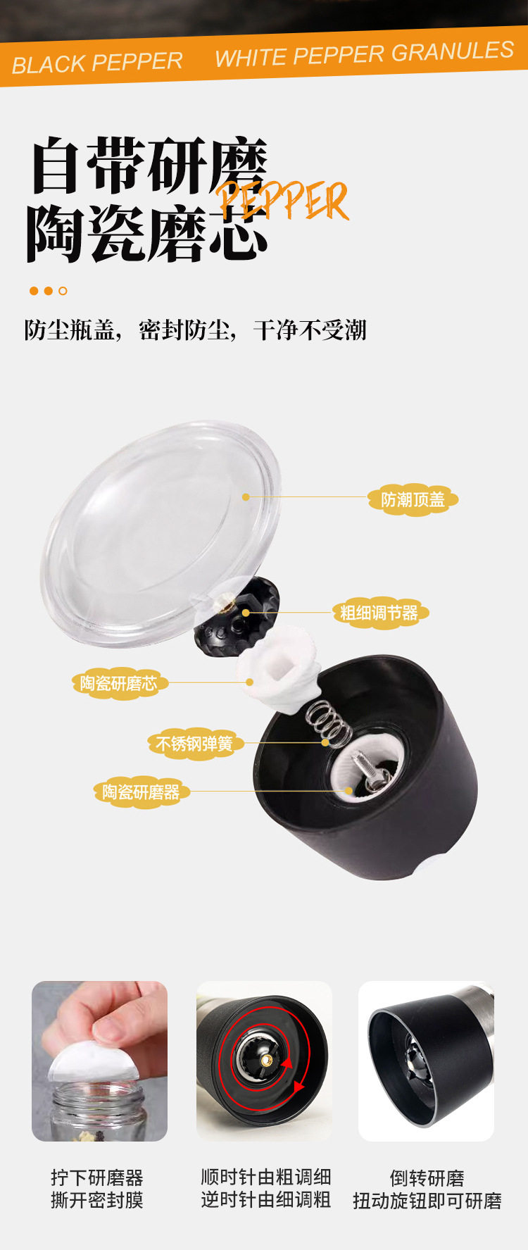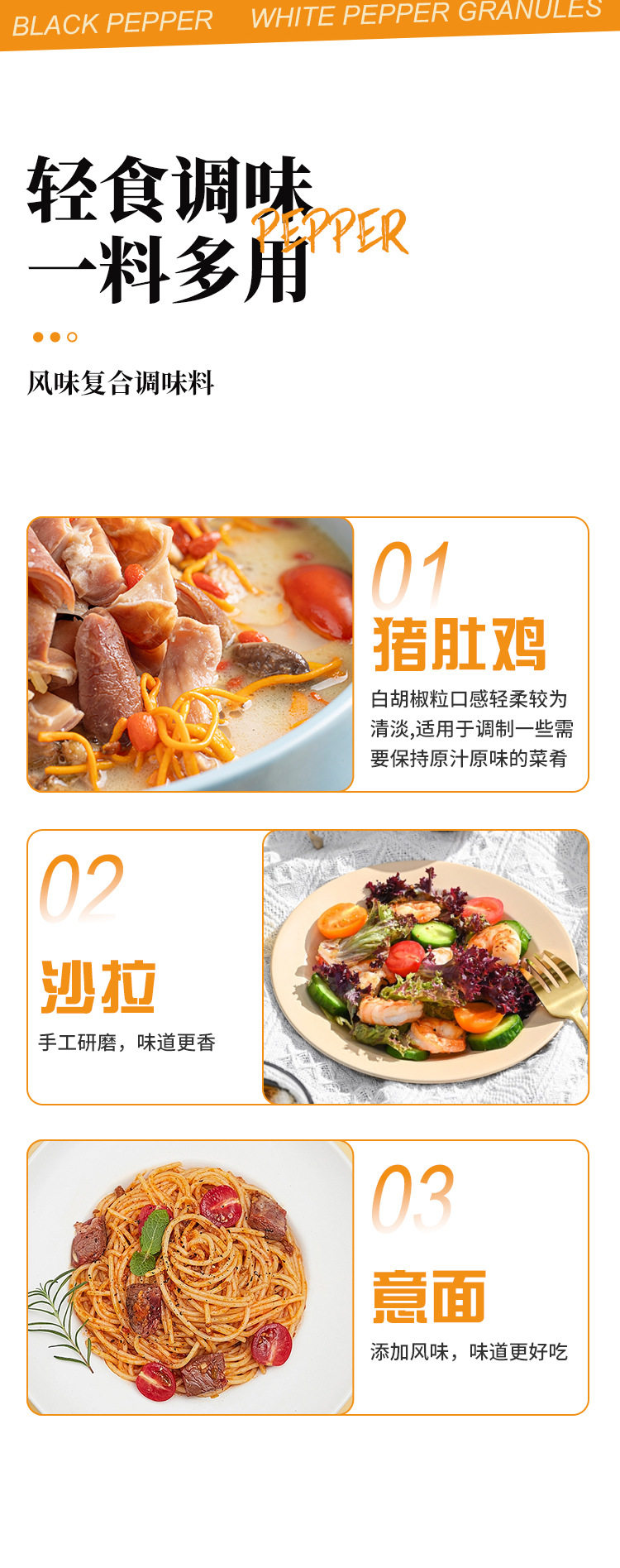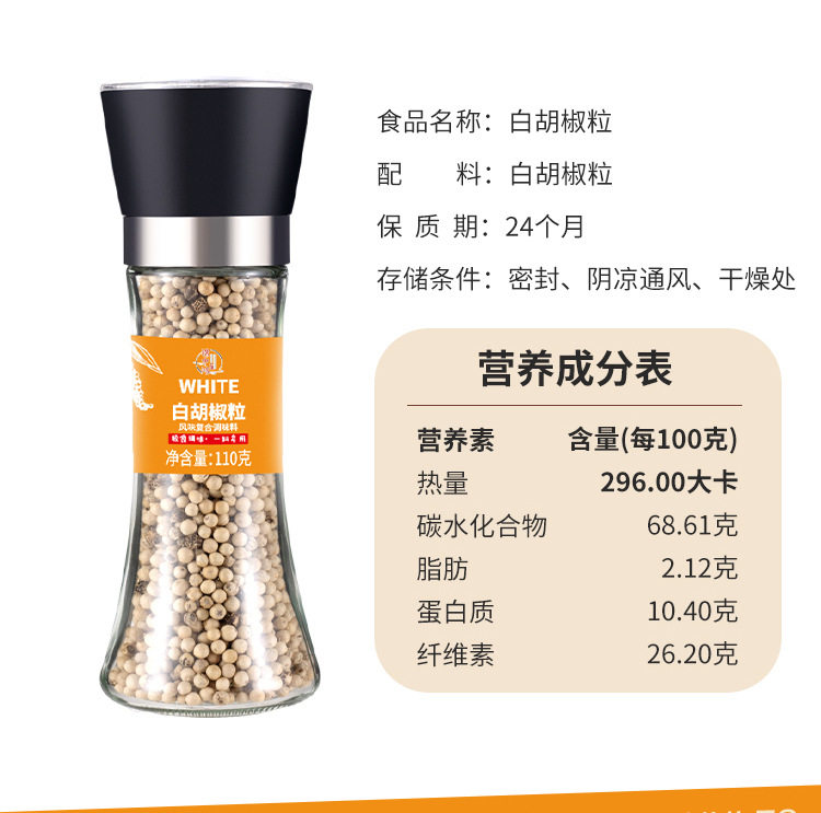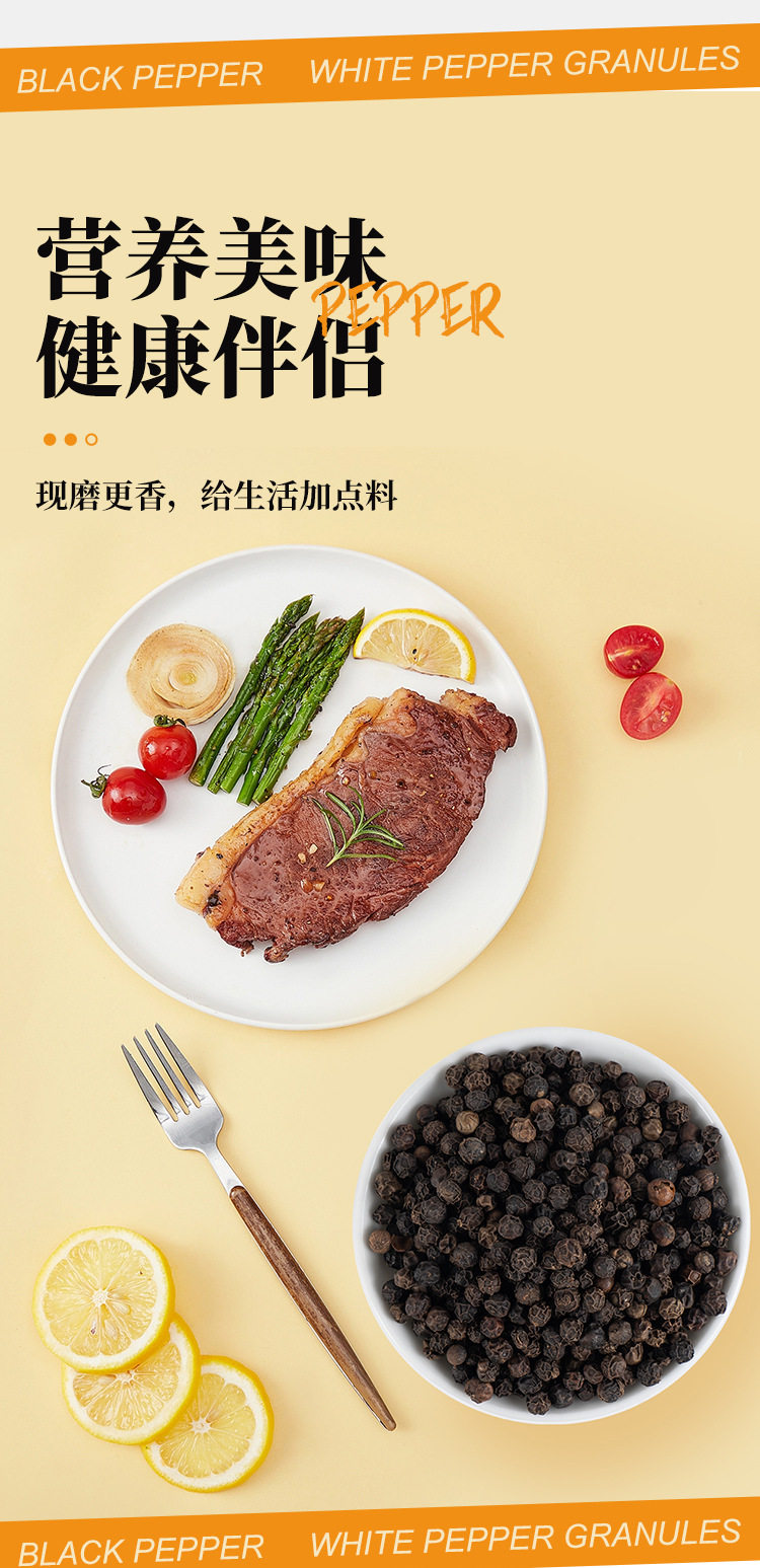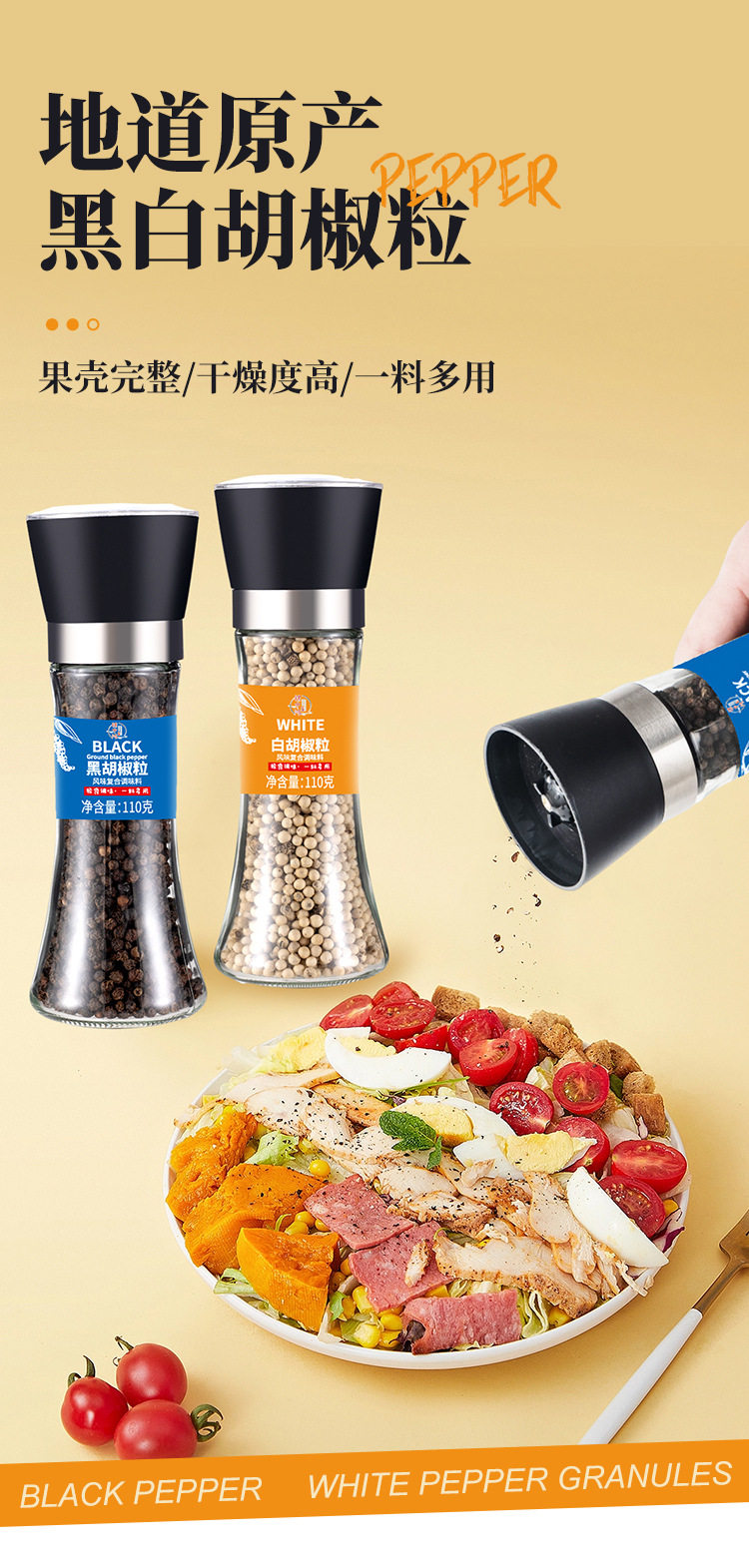 | Packing specification | Black pepper 110g,White pepper 110g |