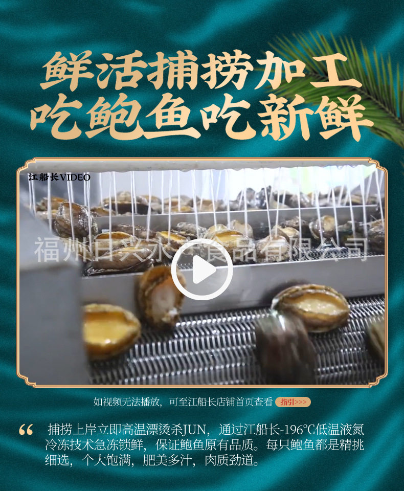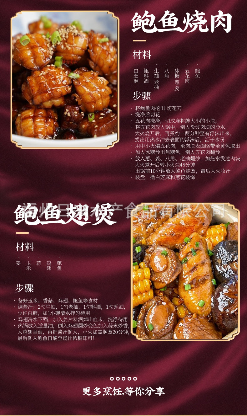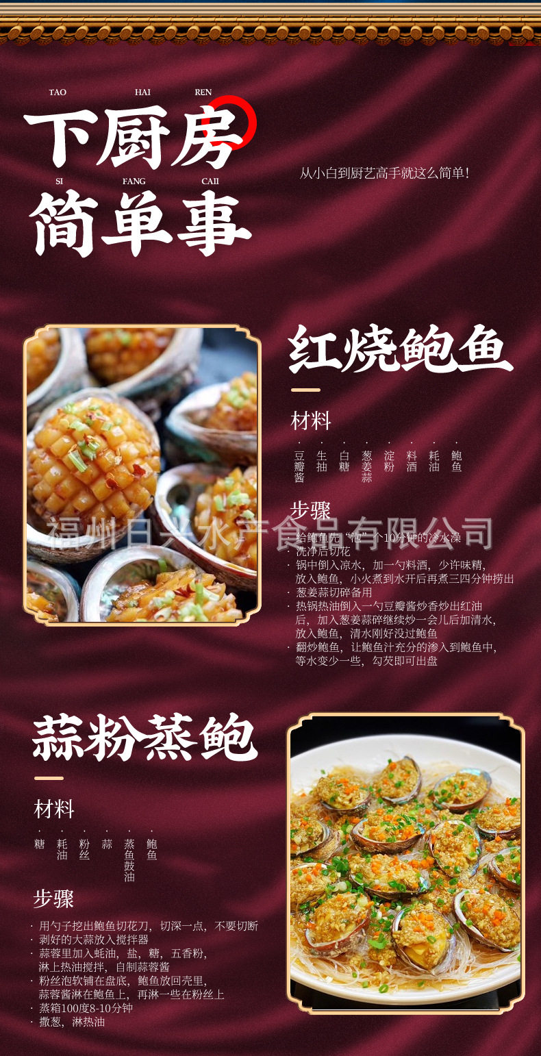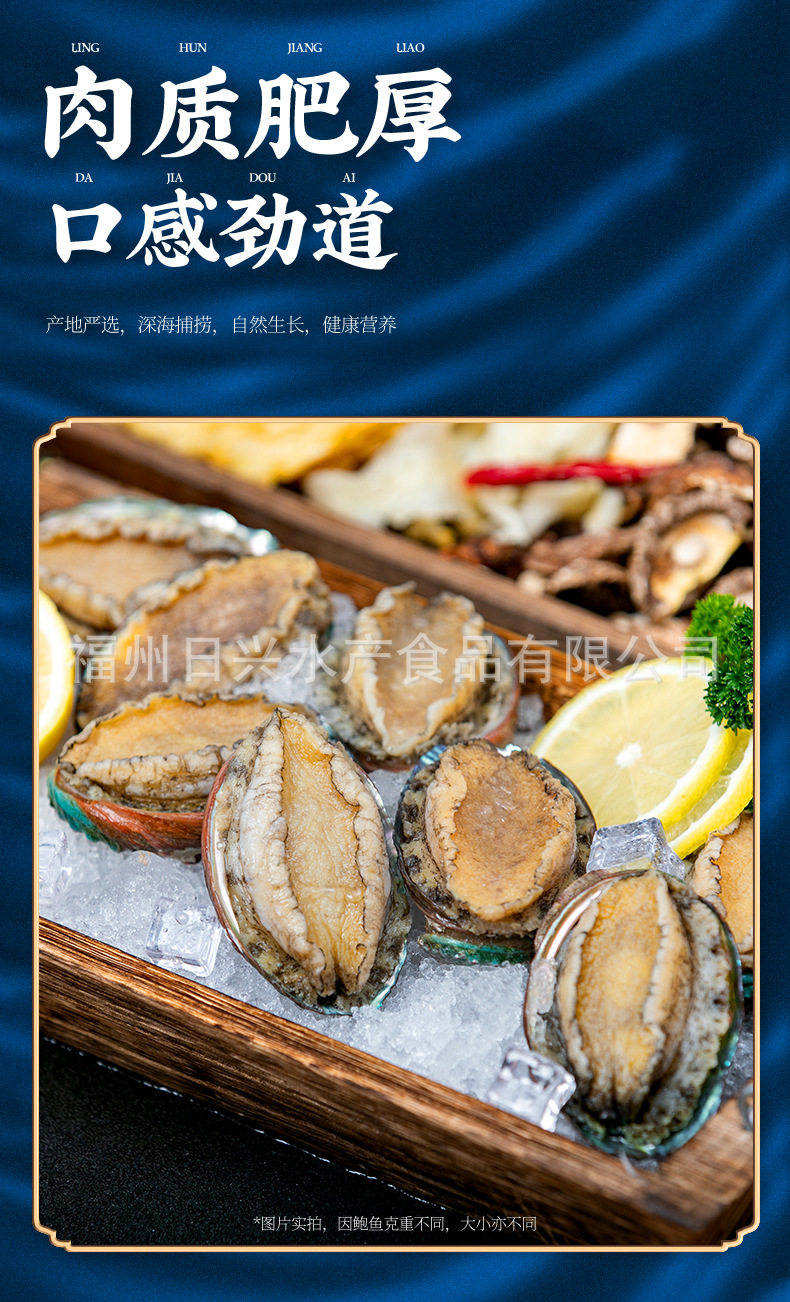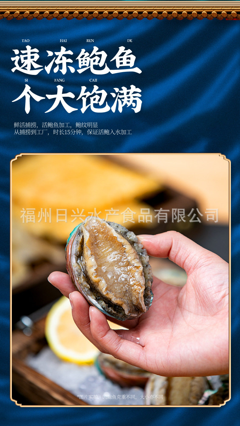 | Packaging specifications | 8 pieces with shell, 3 packs,1 pack with shell and guts removed,Ten-head abalone 500g |
