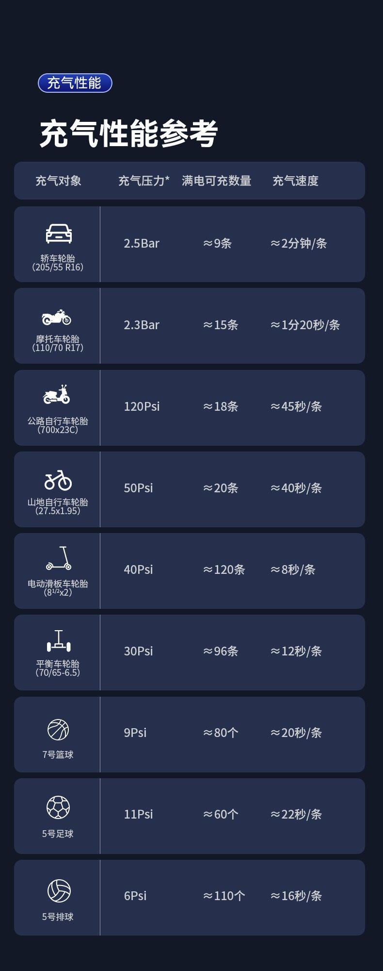 | Additional functions | Lighting,Tire pressure gauge,Warning light |