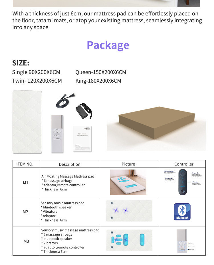 Factory Direct Sales Smart Mattress Tatami Thin Remote Control Massage Mat Home Hotel Soothing Sensory Music Mattress