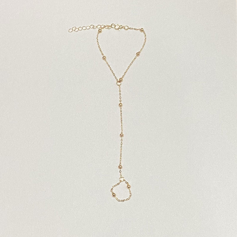 Cross-border hot-selling metal ball bracelet women's simple ins cold wind imitation pearl slave chain with finger jewelry wholesale