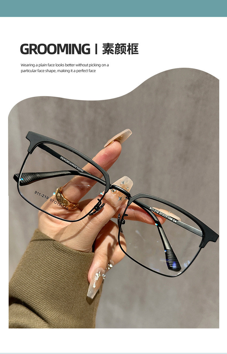 911-219 Non-magnetic Half Frame Business Eyebrow Frame Men's E-commerce Mixed Batch Cool Black Gold Flat Frame