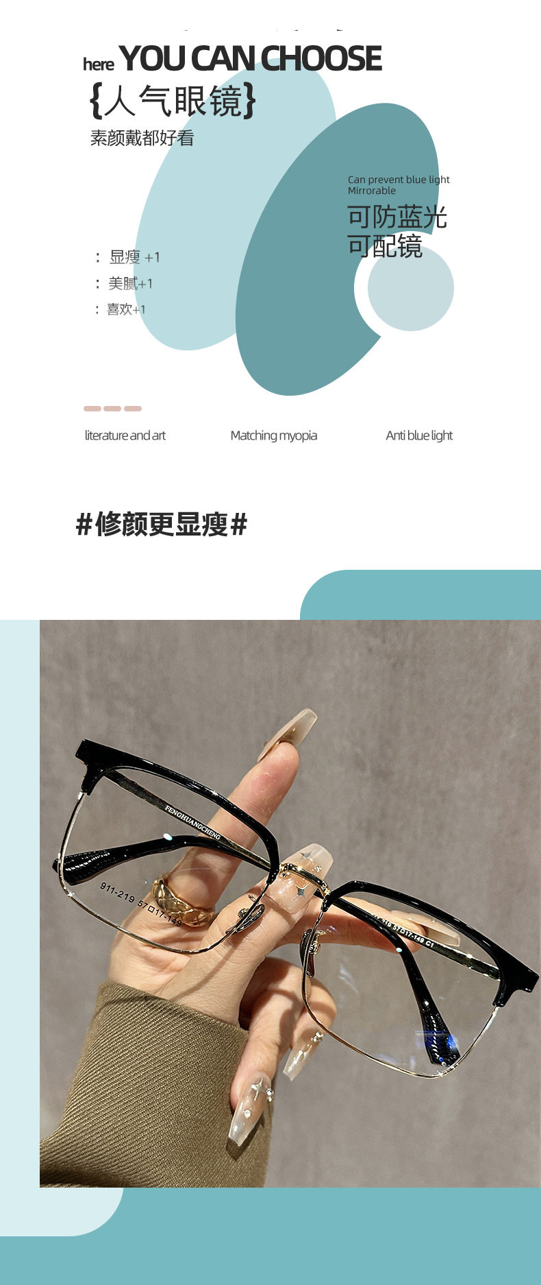 | Frame color | Black gold c1+ non-magnetic,Sand black c4+ non-magnetic,Black gun color c5+ non-magnetic,Black silver c2+ non-magnetic,Transparent gray c3+ non-magnetic |