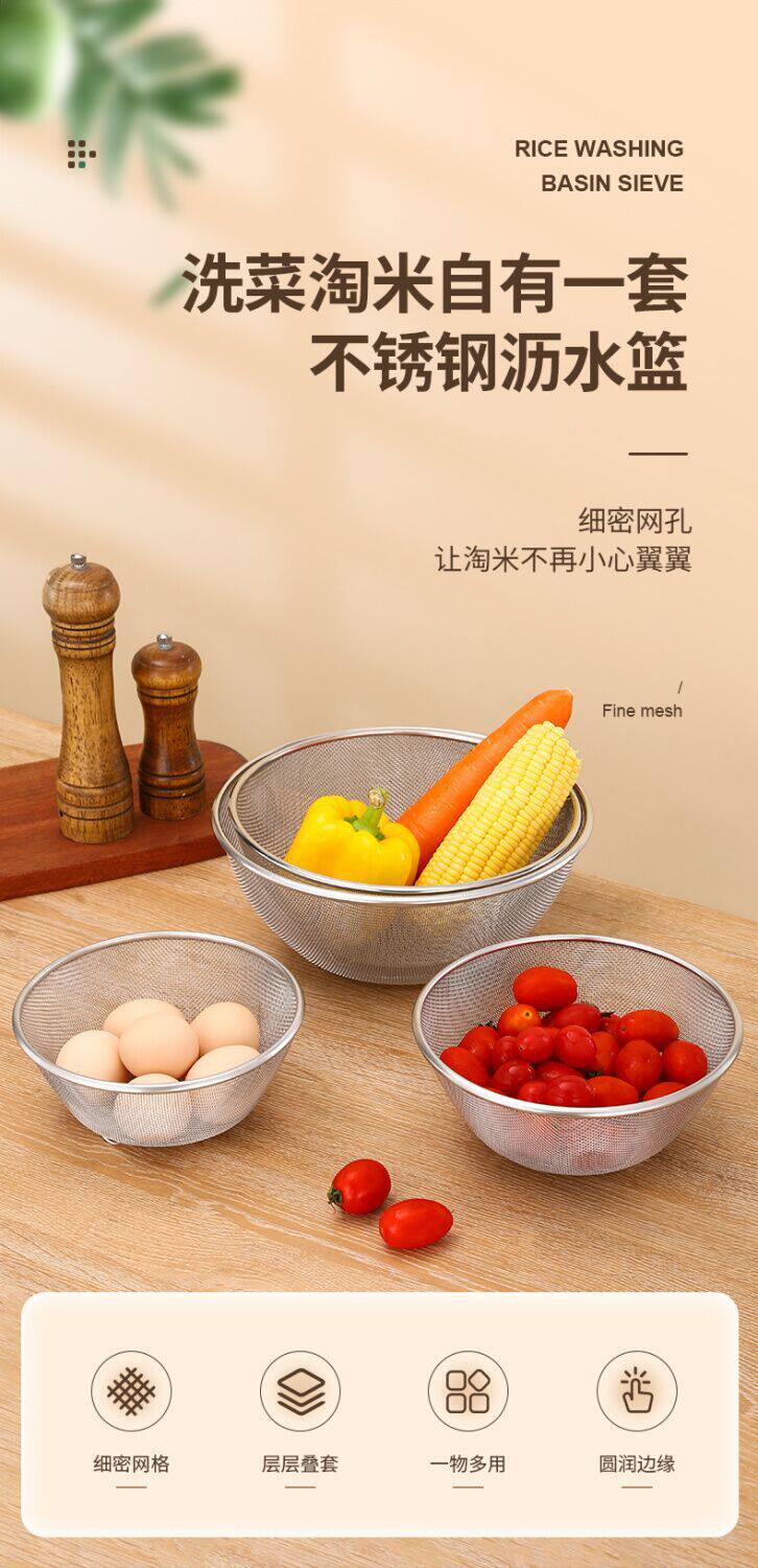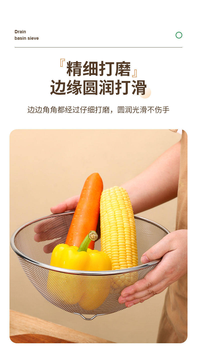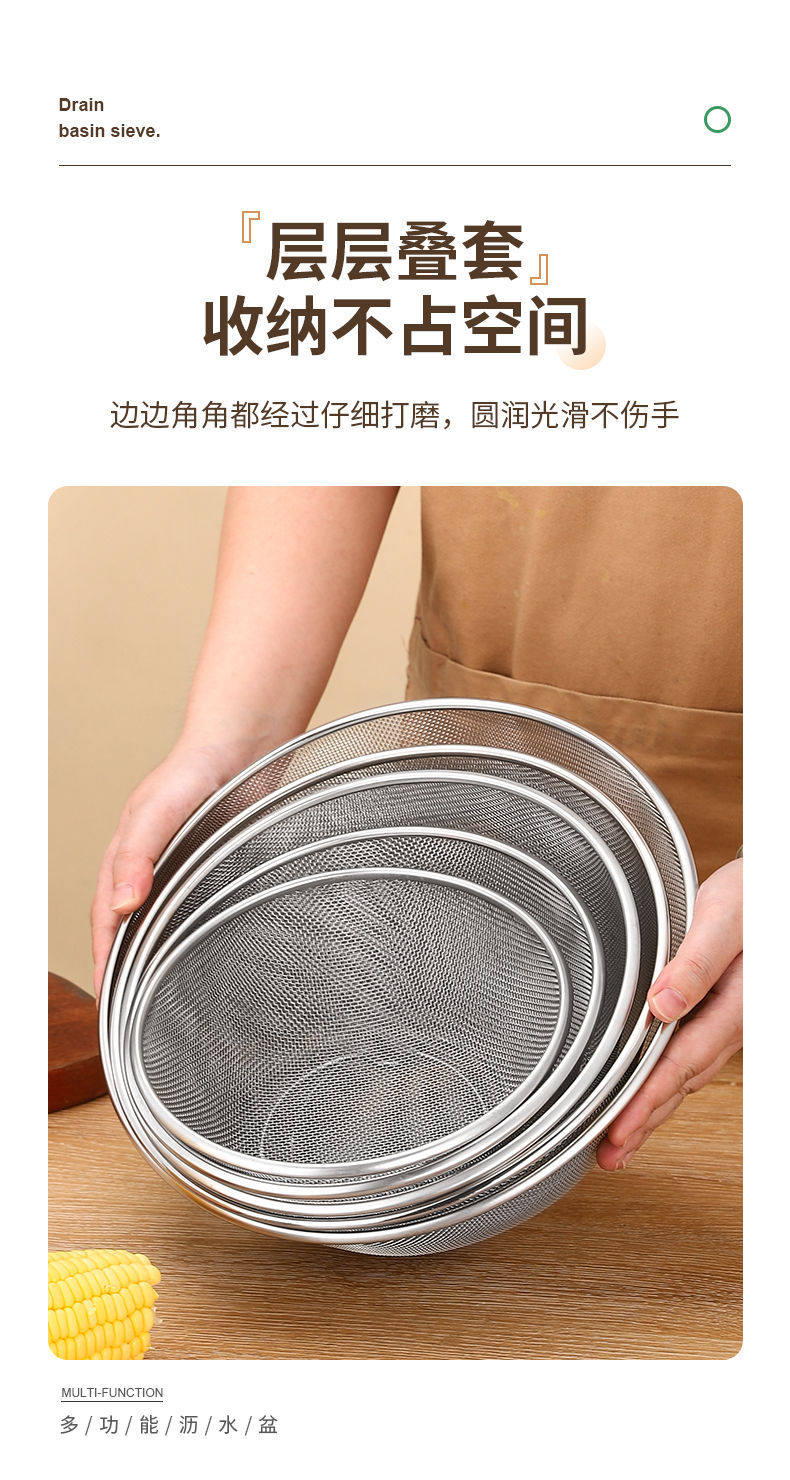 Stainless Steel Dense Mesh Basket Drain Basket Vegetable Washing Basket Thickened Rice Amoy Screen Fine Mesh Basket Round Korean Fruit Basket Mesh