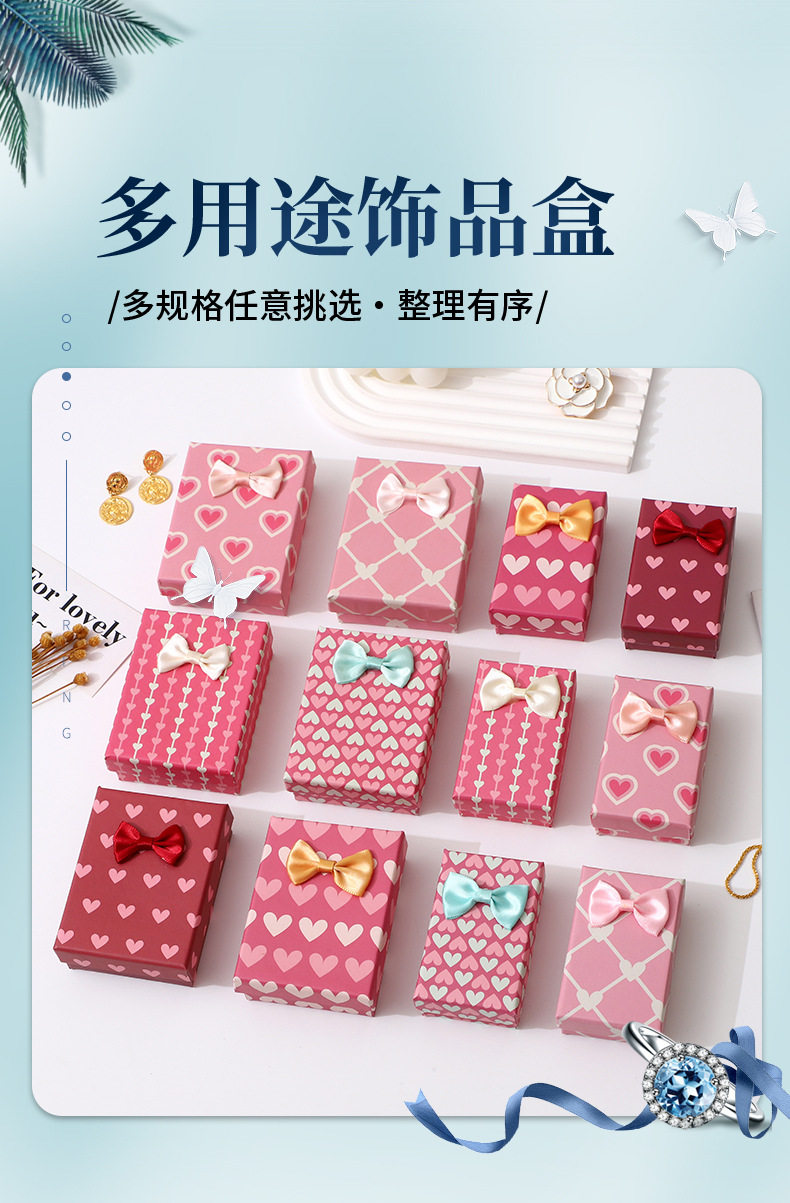 Jewelry Packaging Box, Jewelry Storage Box, Pink Bow, Mixed Colors, in Stock, Earrings, Bracelets, Cross-Border Gift Box